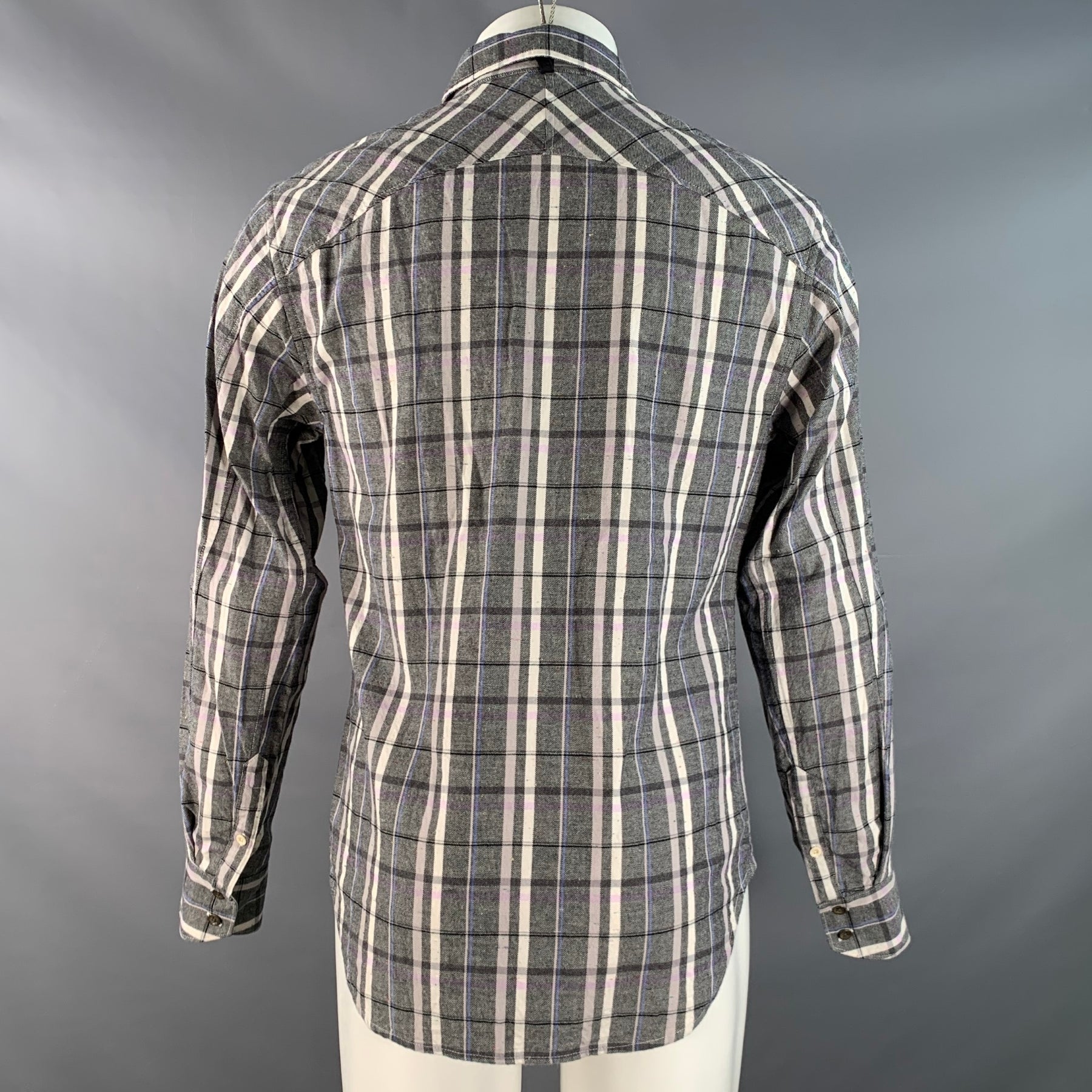 RAG & BONE Size S Black White & Purple Plaid Pointed Collar Long Sleeve Shirt