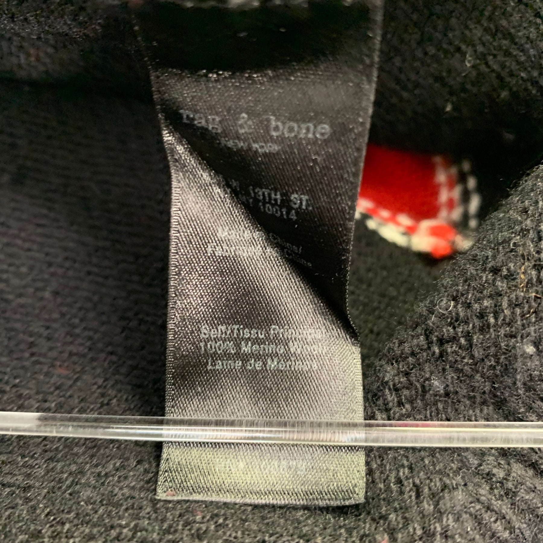RAG & BONE Size XL Black Red Abstract Merino Wool Crew Neck Sweater