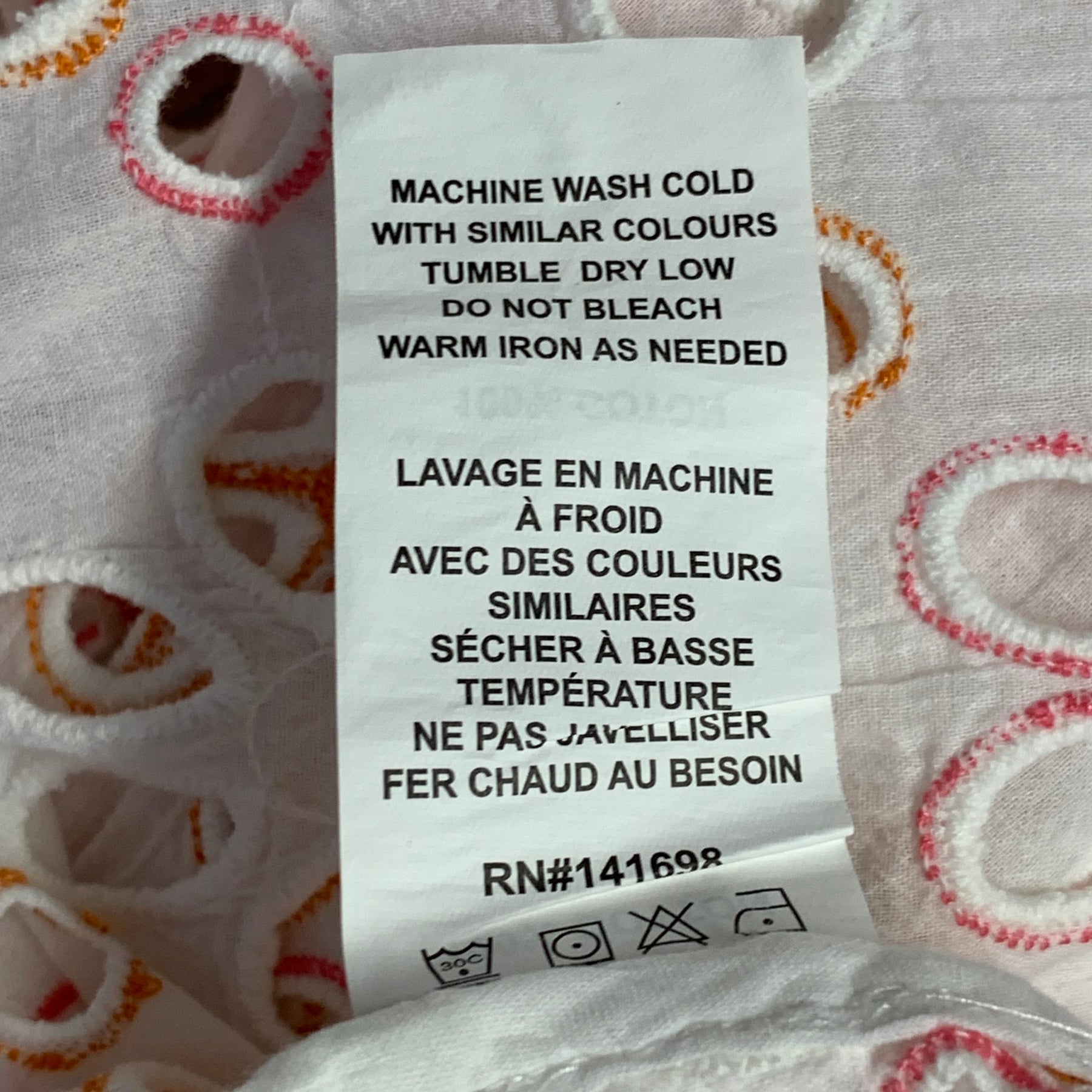 RAMY BROOK Size XL White Pink Orange Cotton Cut Out Button Up Casual Top