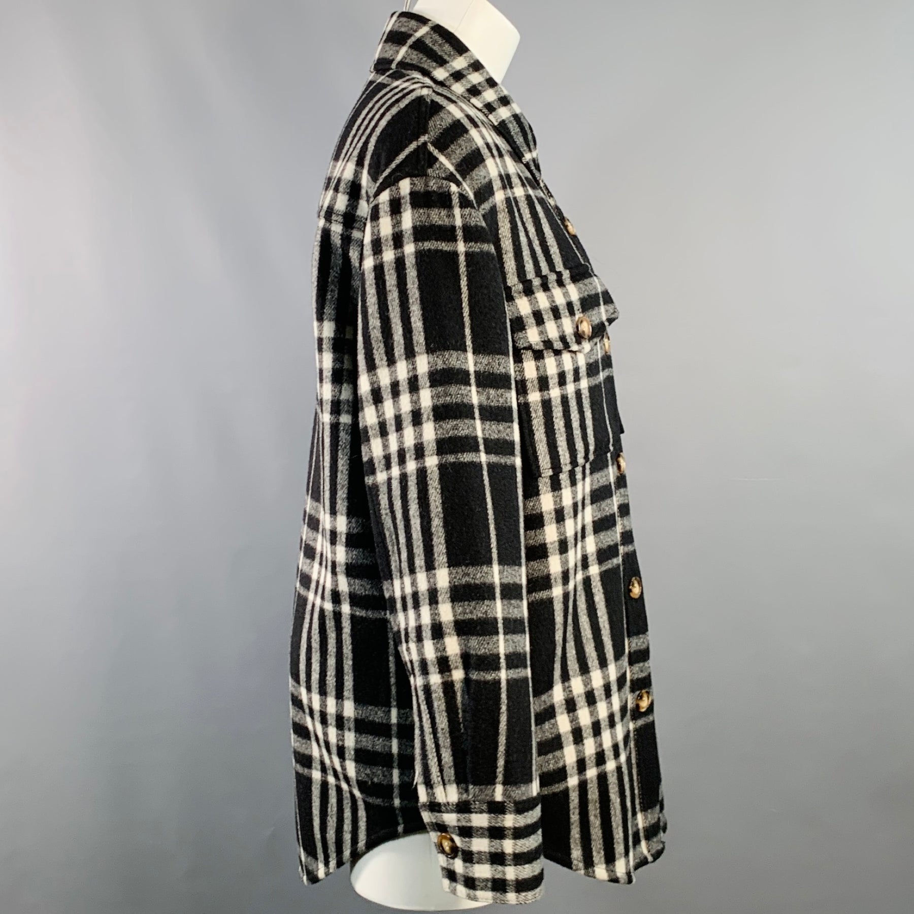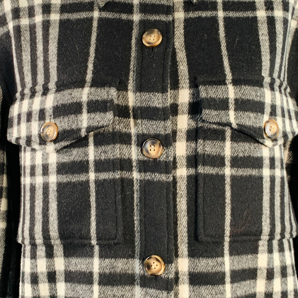 REFORMATION Size M Black White Wool Blend Plaid Shirt Jacket