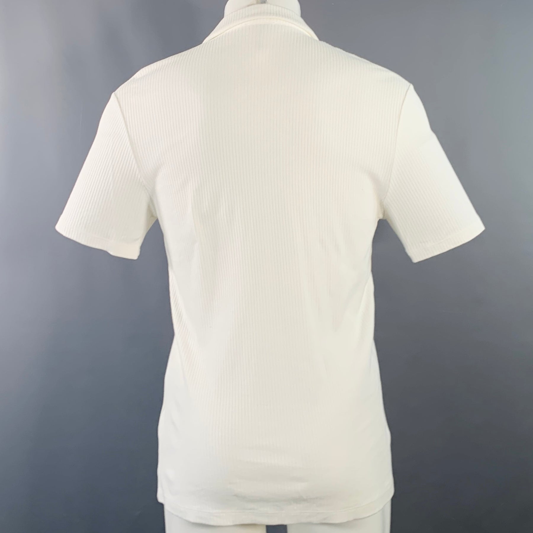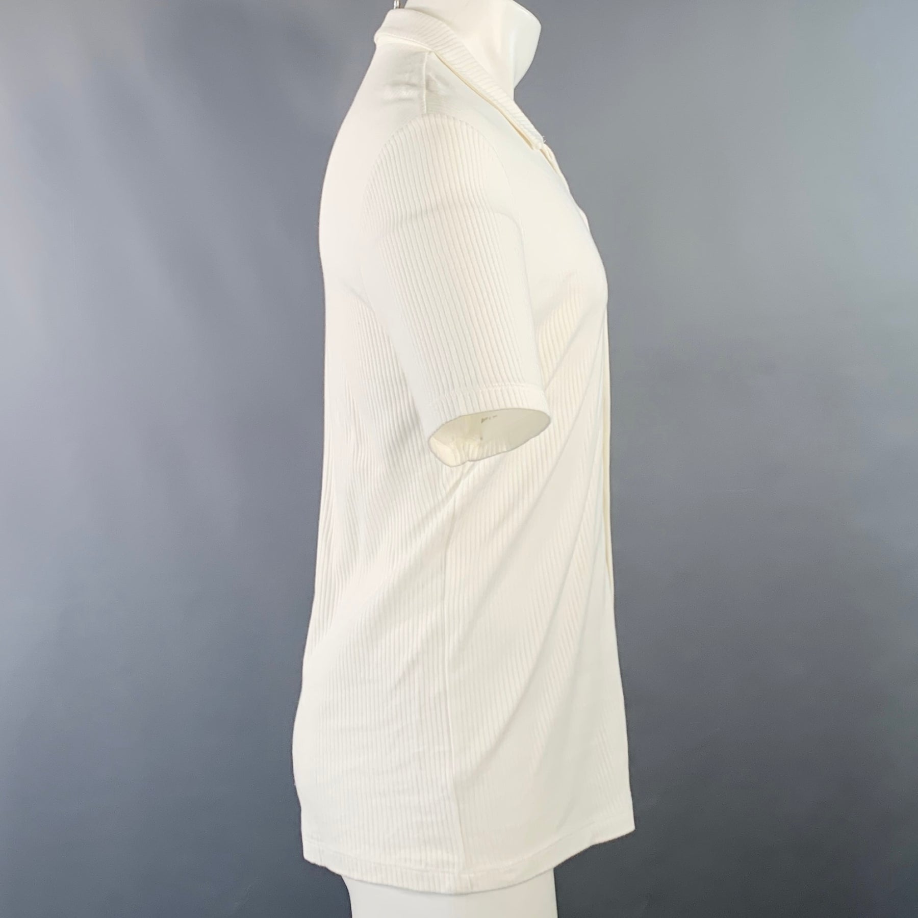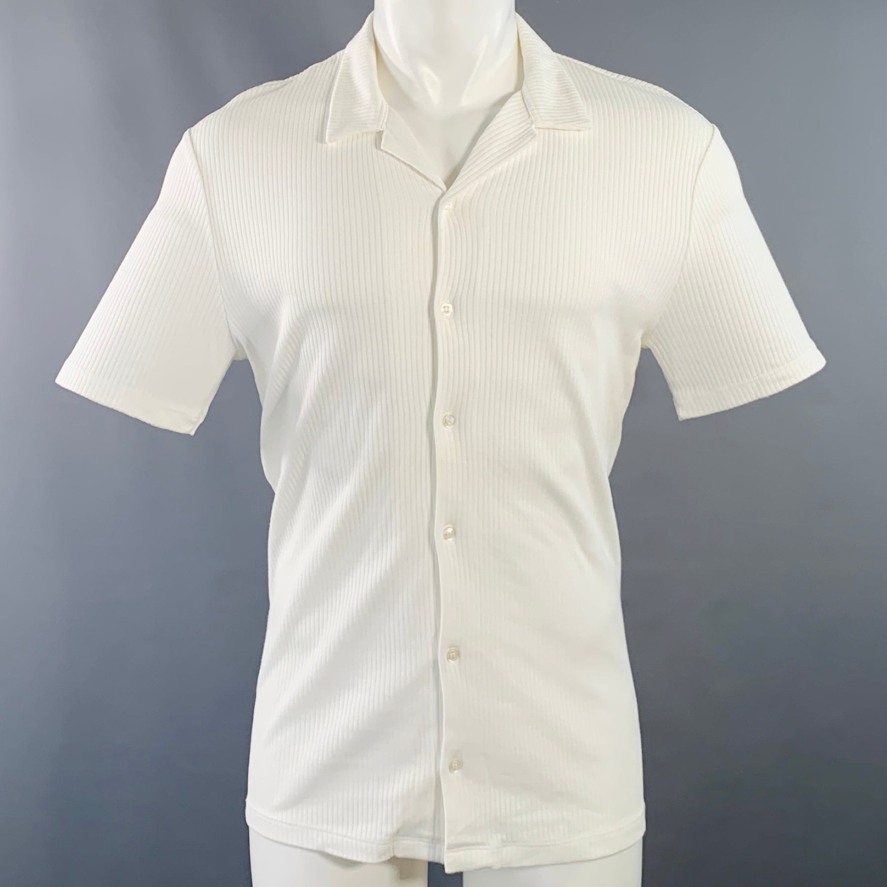 REISS Size M Butler White Ribbed Cotton Camp Short Sleeve Shirt