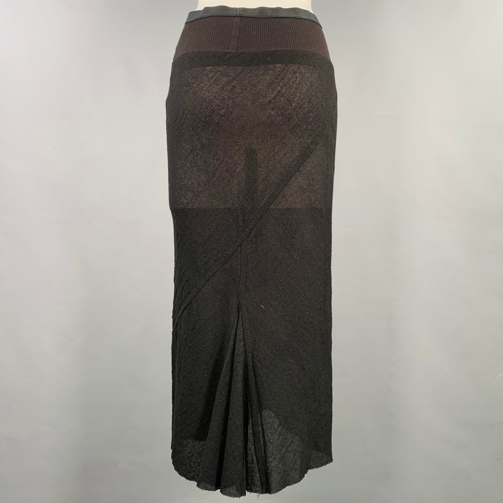 RICK OWENS Size 6 Black Wool Blend Raw Edge Midi Skirt