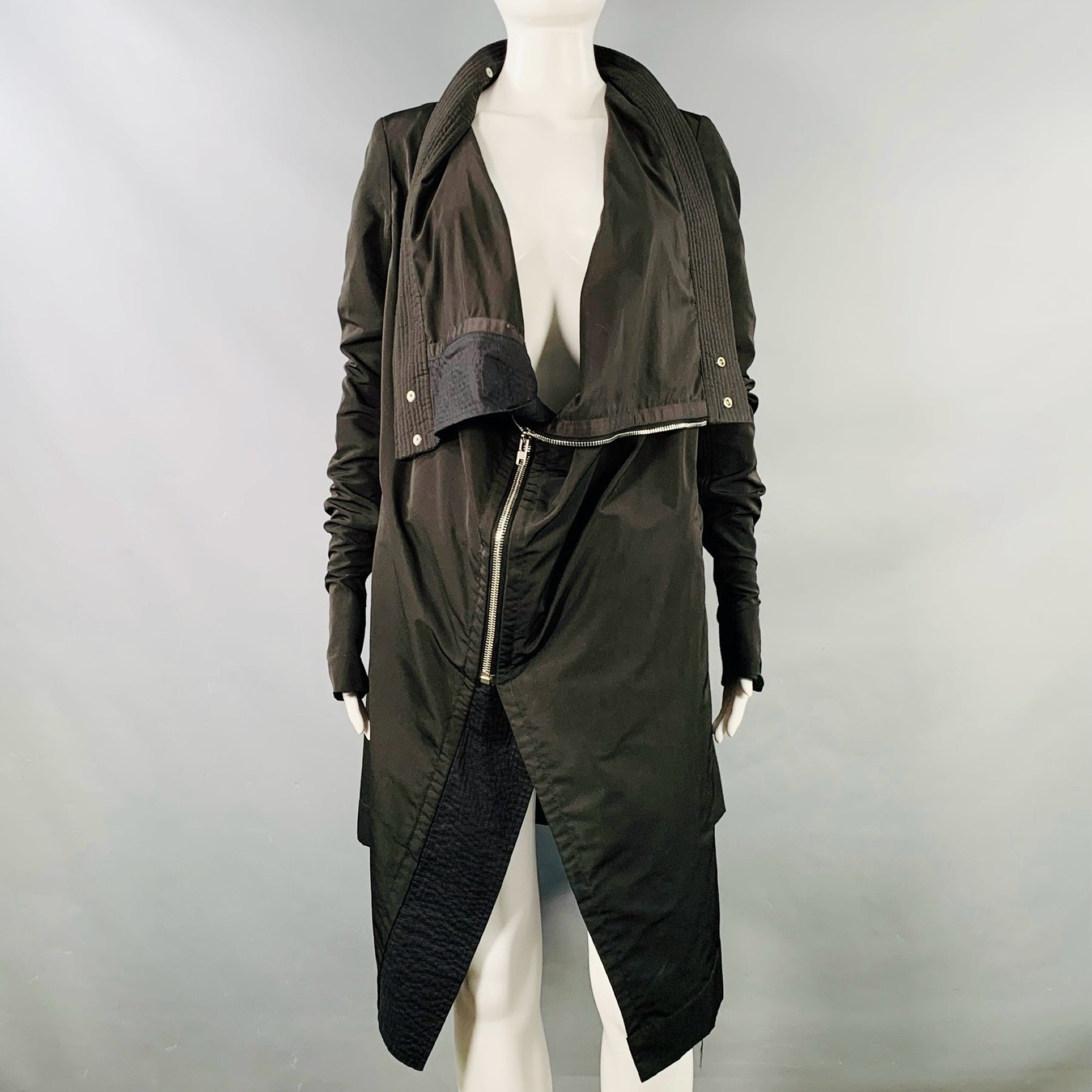 RICK OWENS Size 8 Black Polyester Blend Asymmetrical Zip Up Jacket