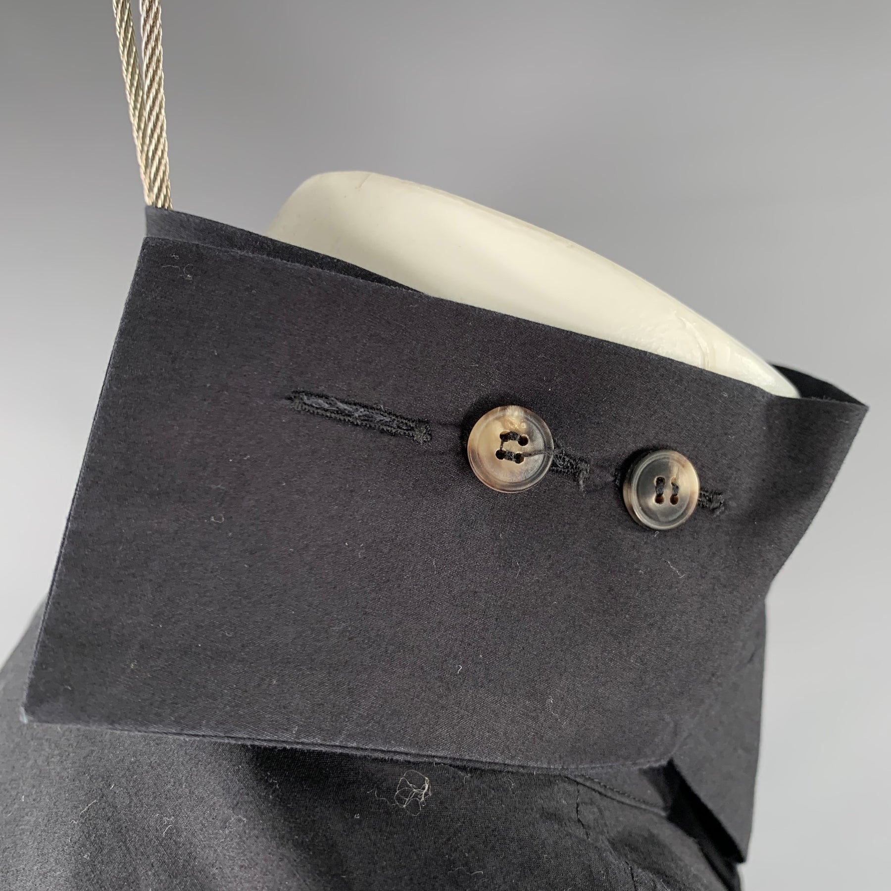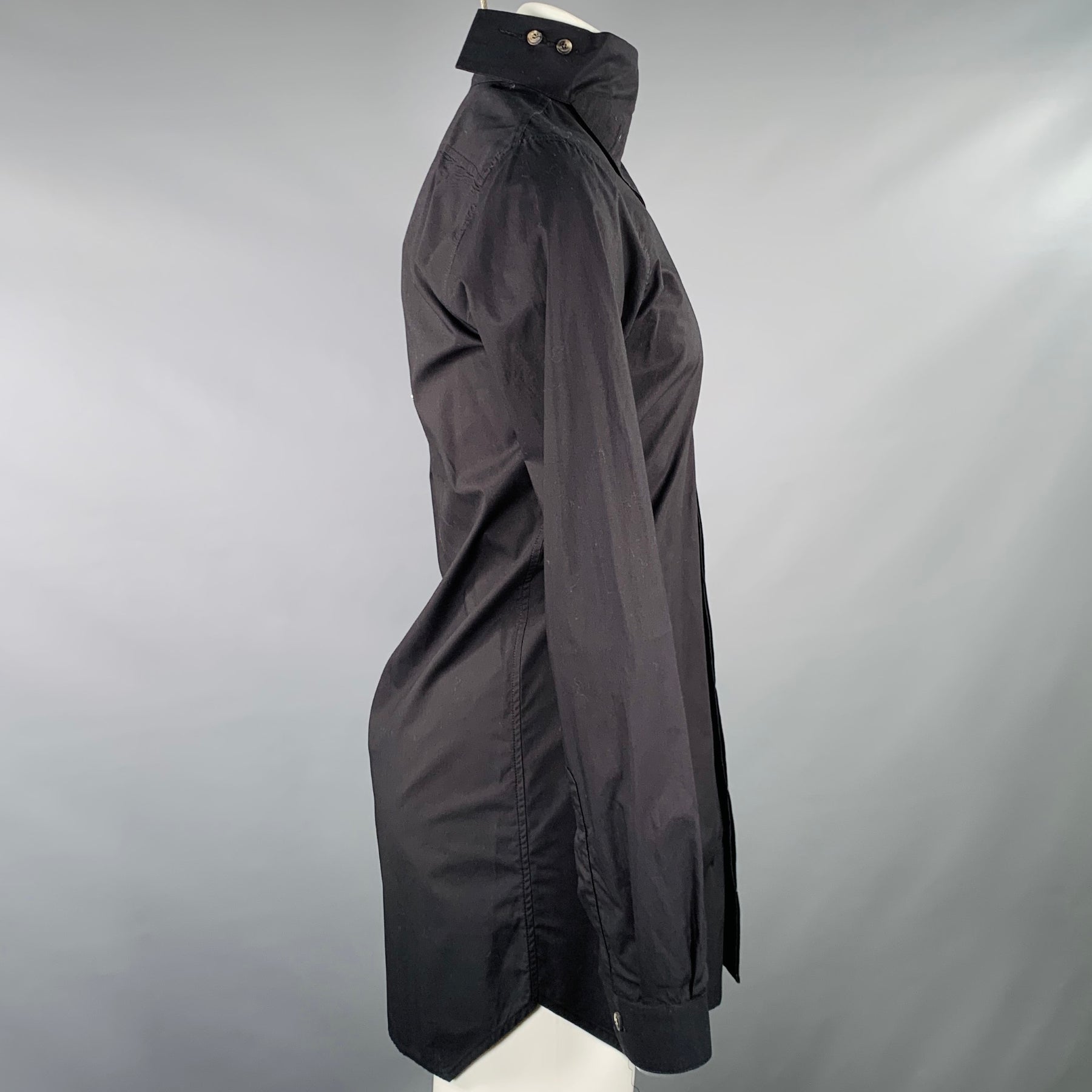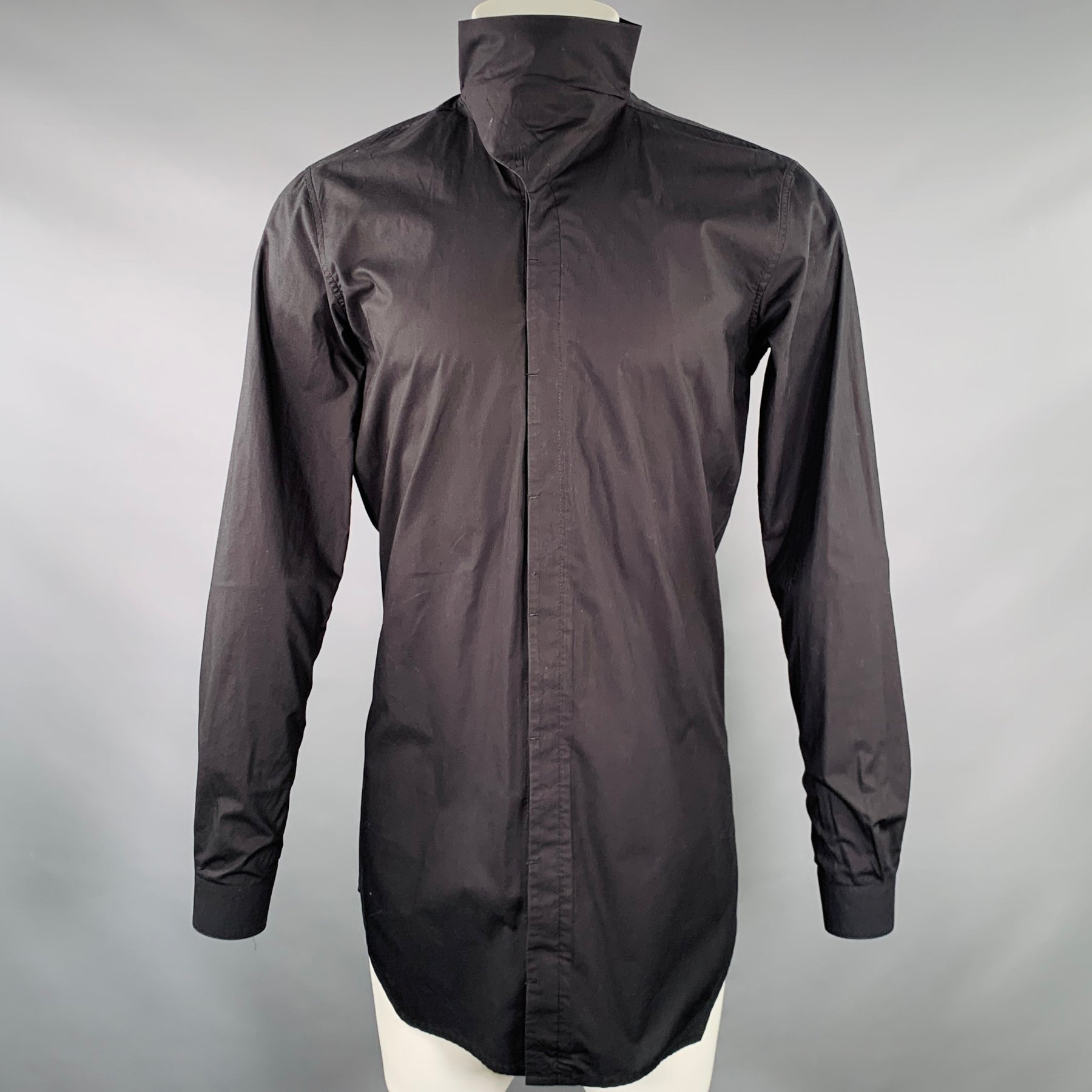 RICK OWENS SS14 "Vicious" long sleeve shirt in a black cotton woven fabric featuring a long style, high buttoned collar, and hidden button closure.