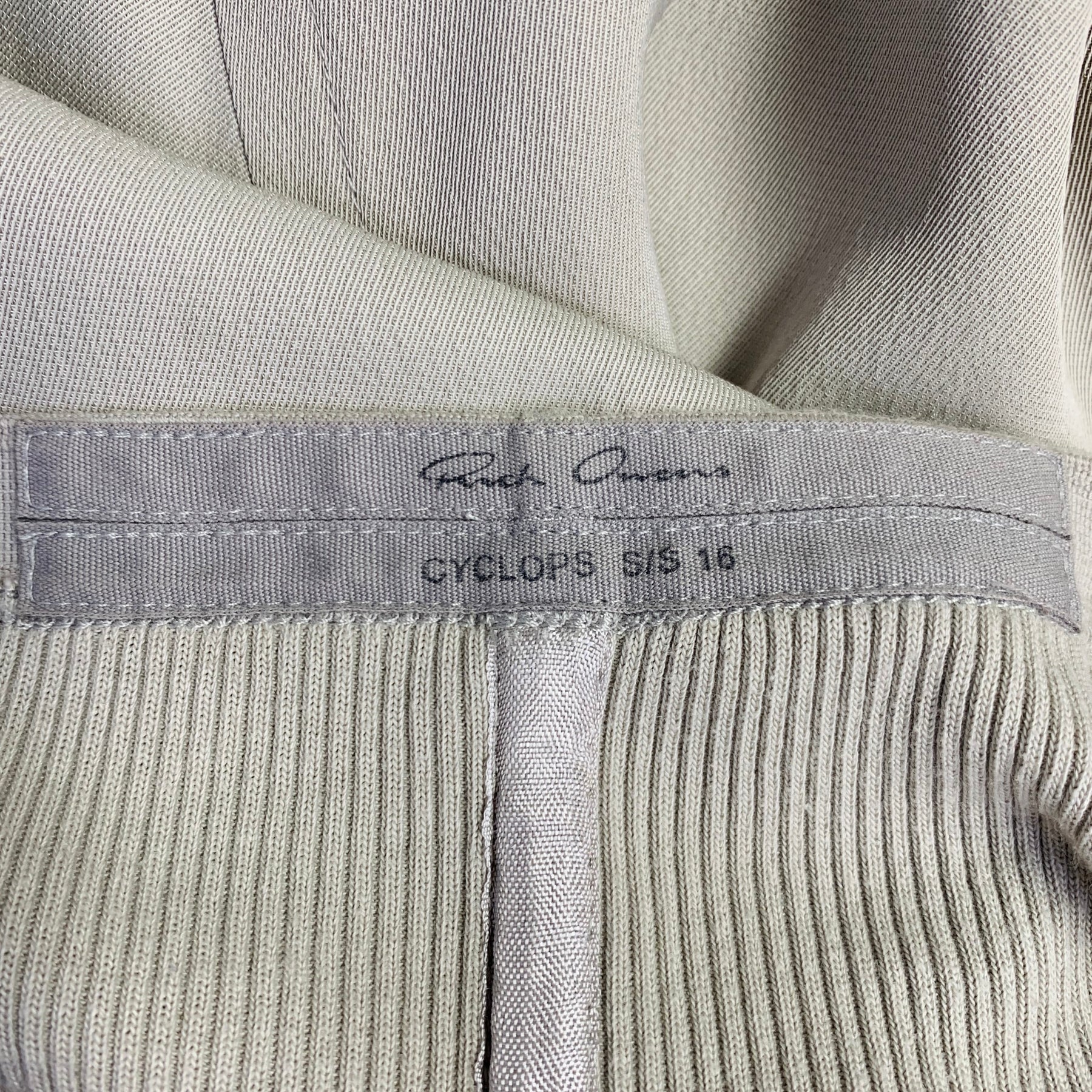 RICK OWENS SS16 "Cyclops" skirt in a sage green viscose stretch blend jersey featuring an asymmetrical design, rib knit waist, and pull on closure. Made in Italy.