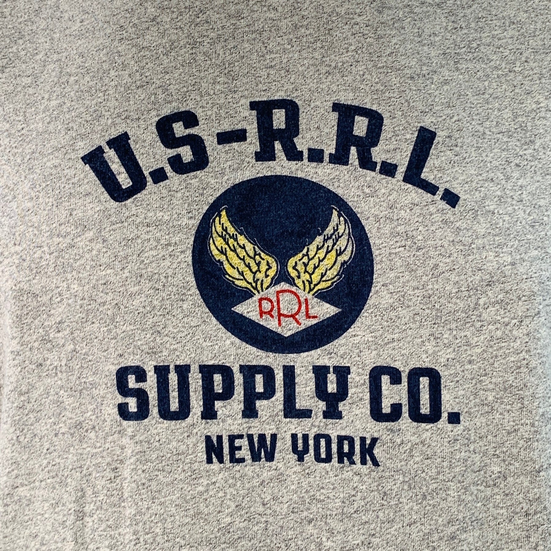 RRL by RALPH LAUREN Size XL Heather Grey Logo Print Cotton T-shirt