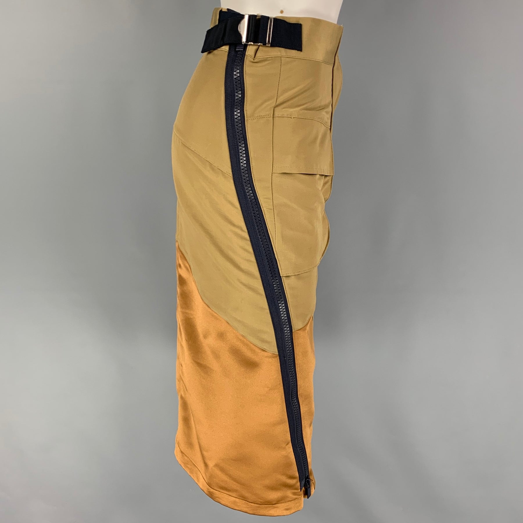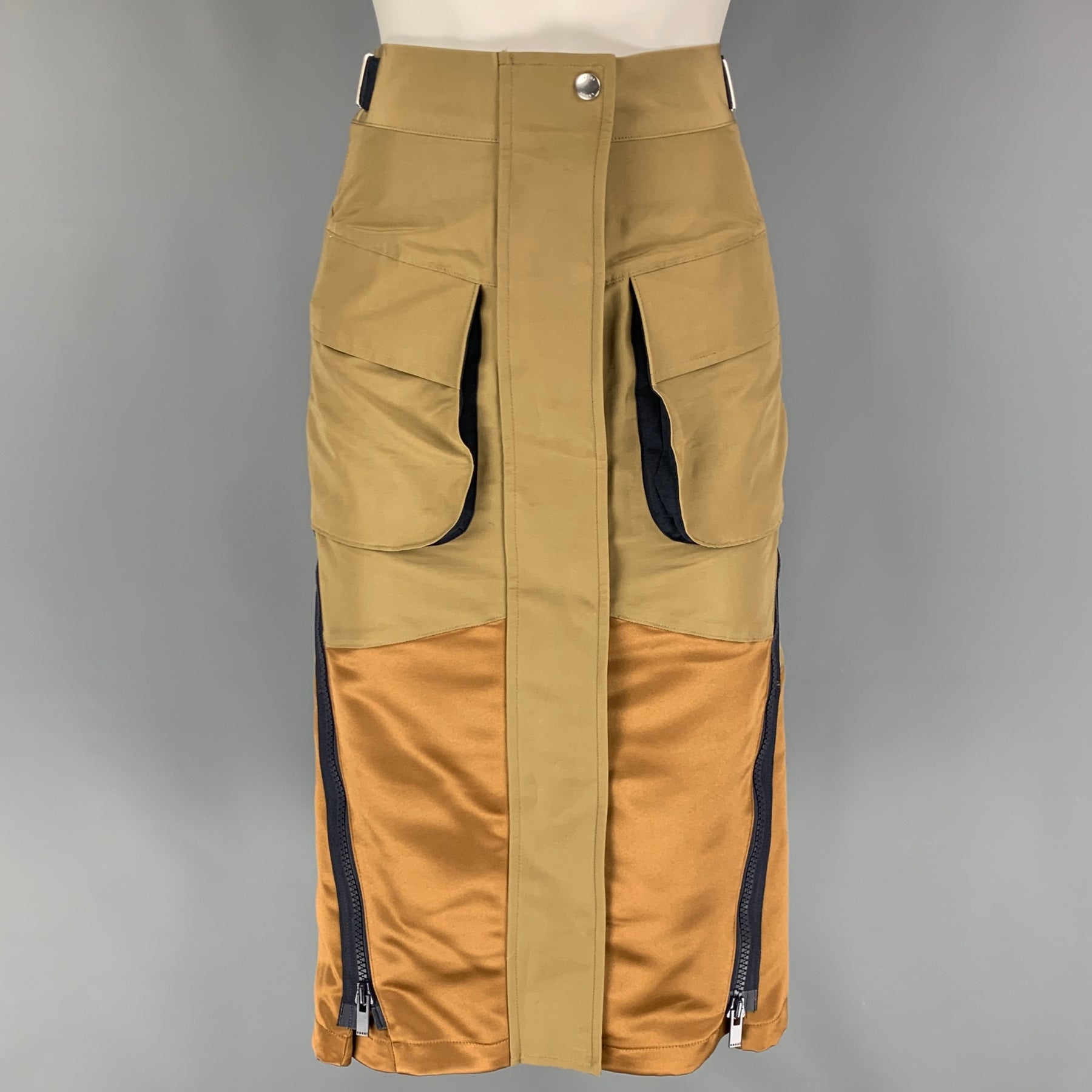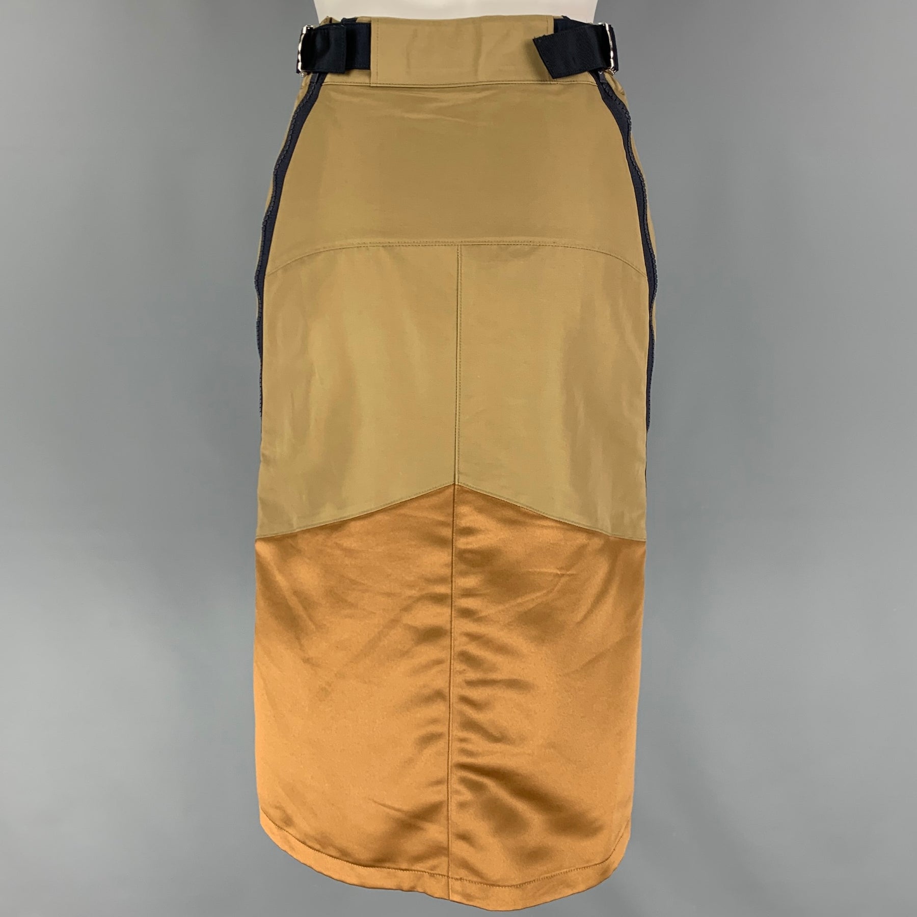 SACAI Size 0 Khaki Gold Cotton Blend Color Block Pencil Below Knee Skirt