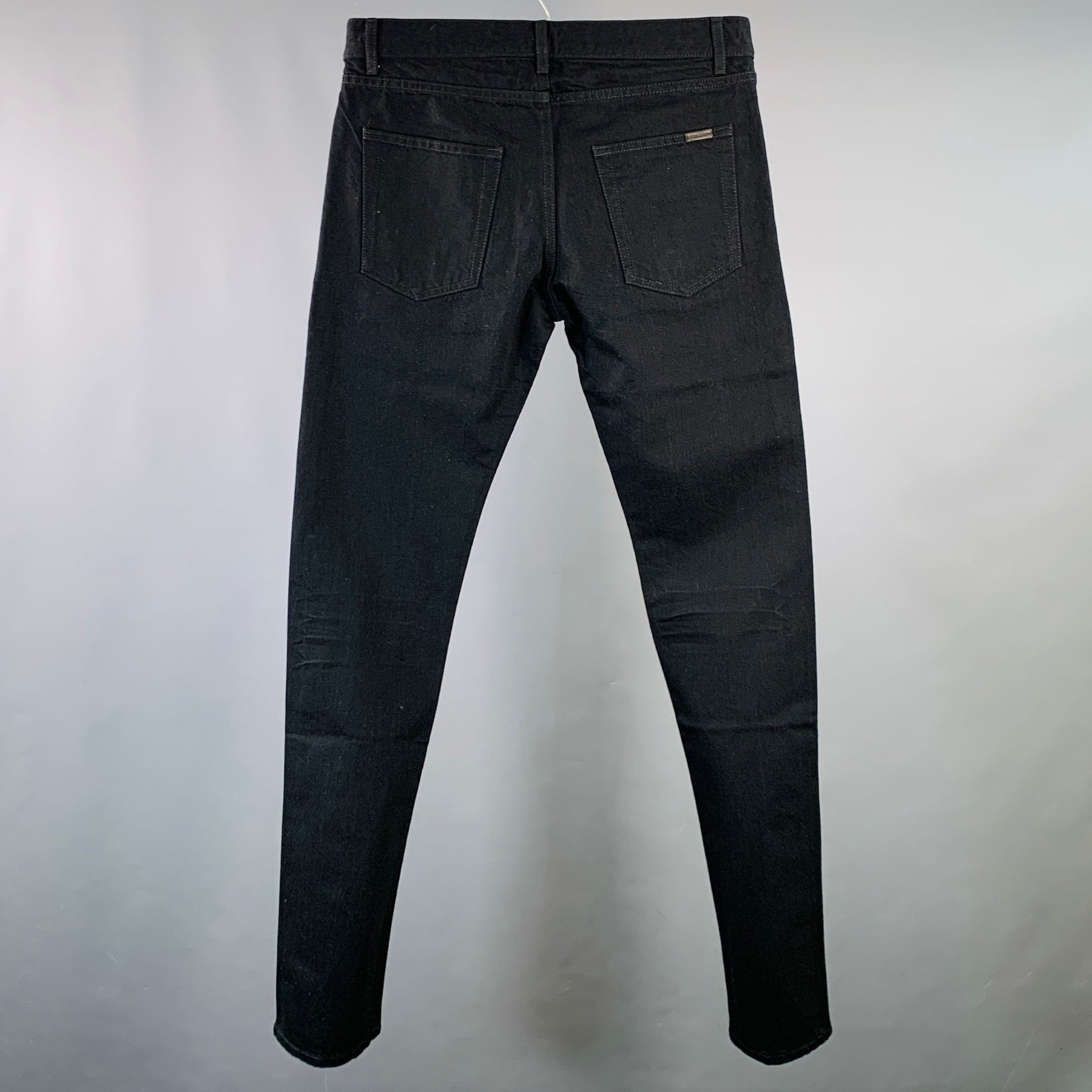 SAINT LAURENT Size 31 Black Denim Straight Slim Five Pockets Jeans
