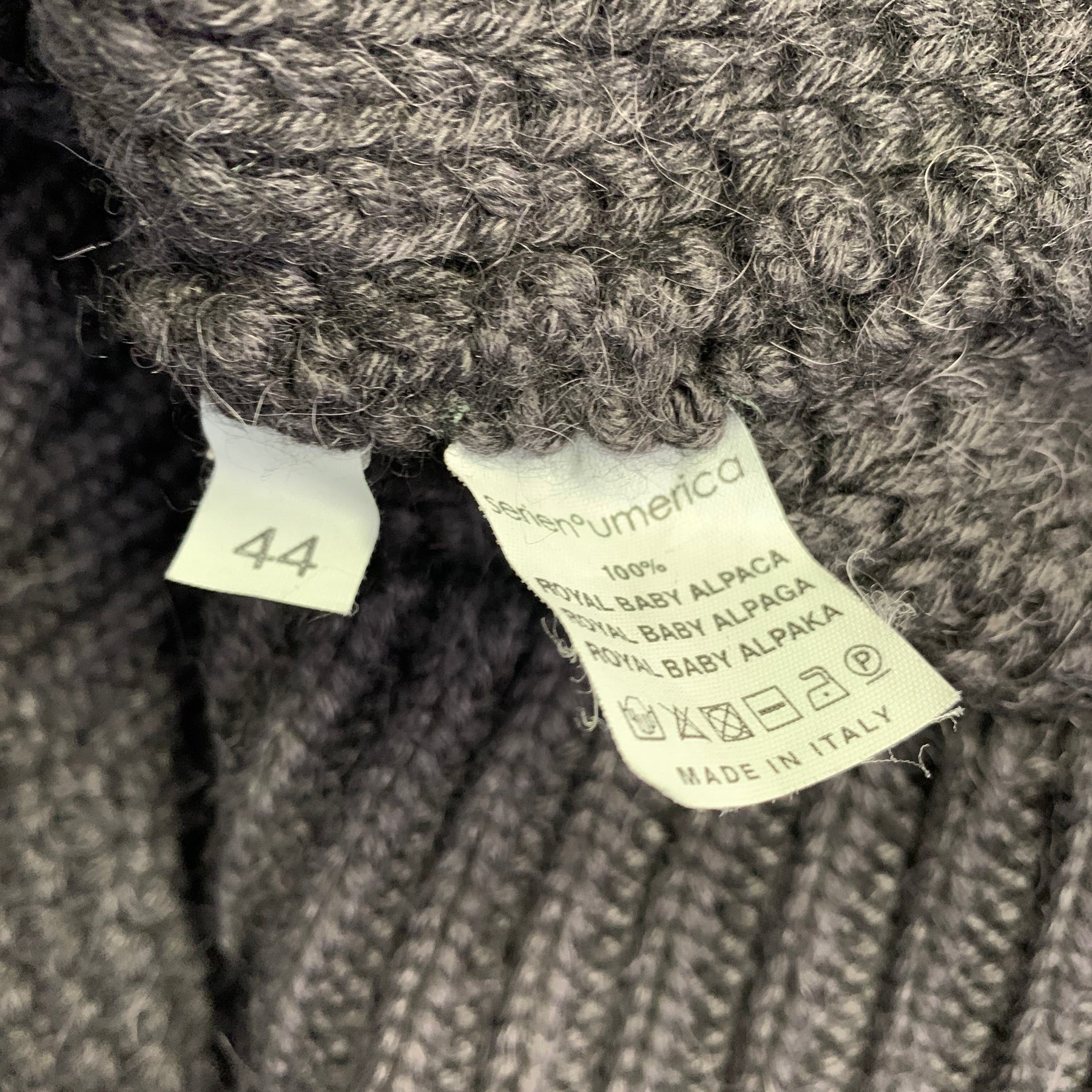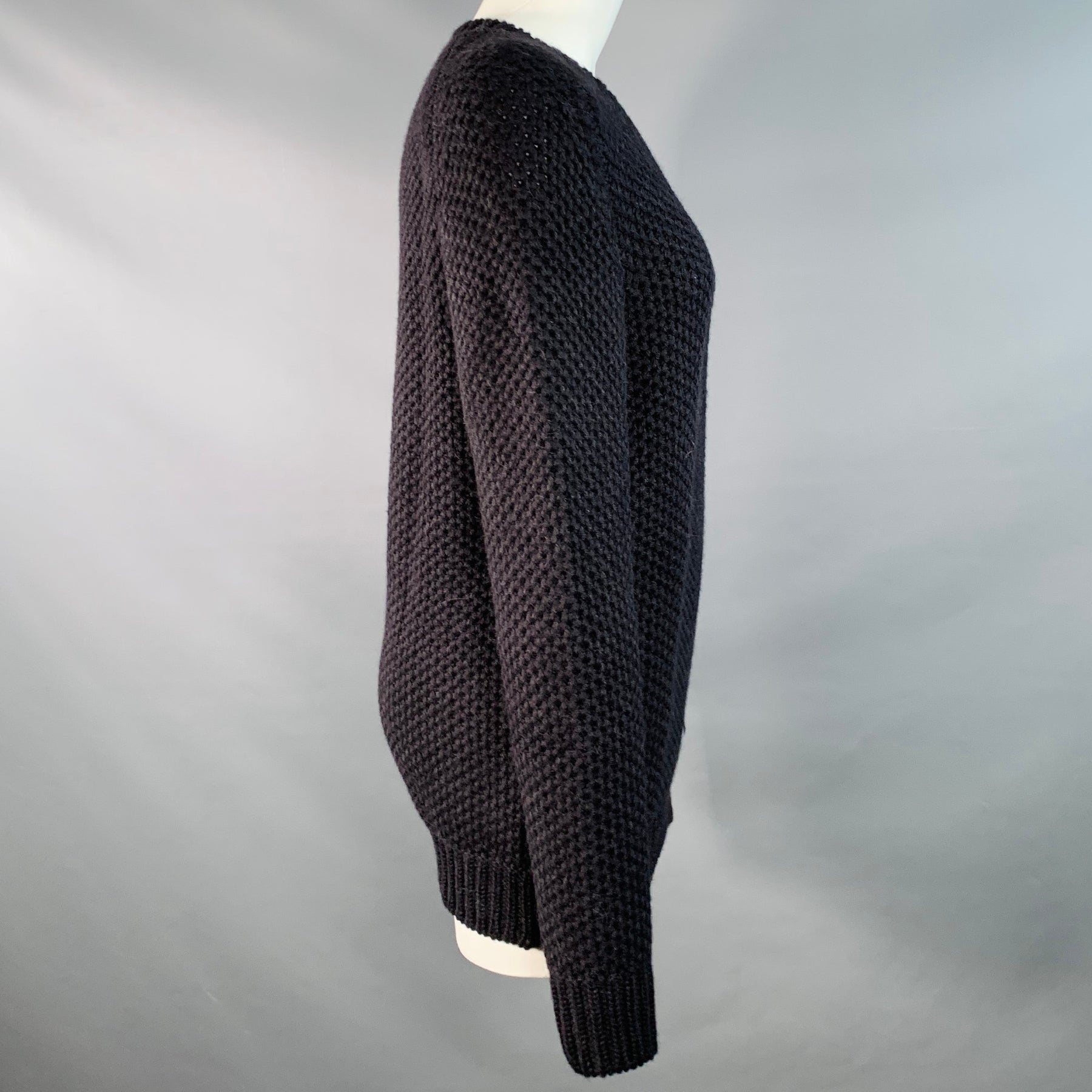 SERIENUMERICA Size 8 Black Baby Alpaca Knit Crew Neck Sweater
