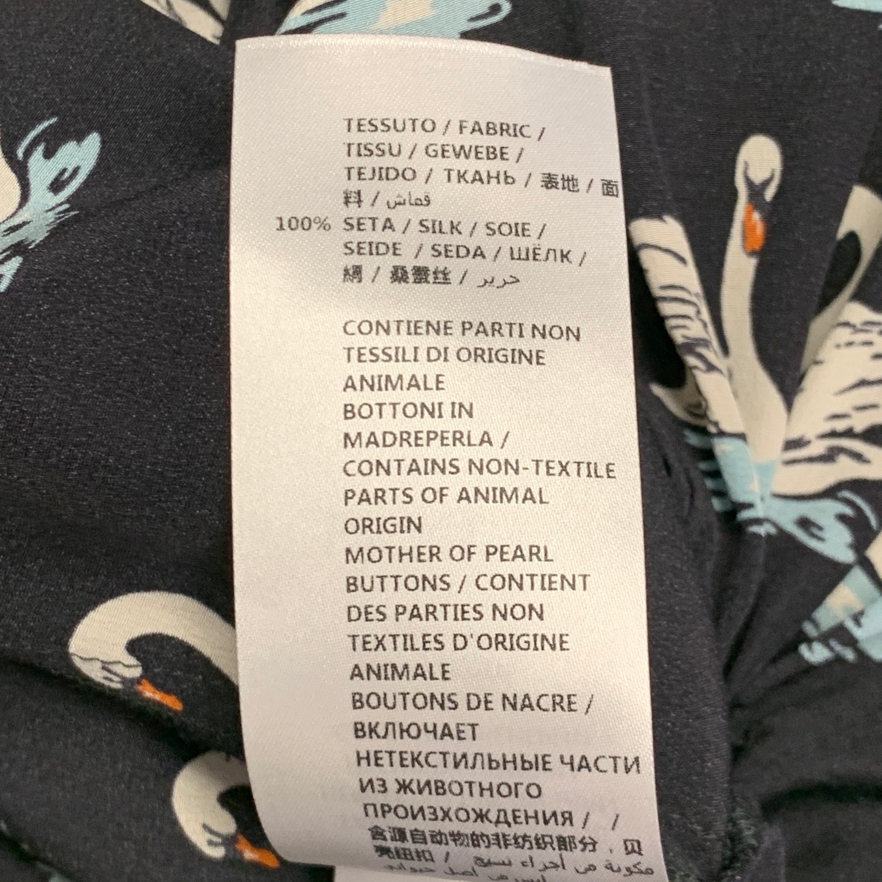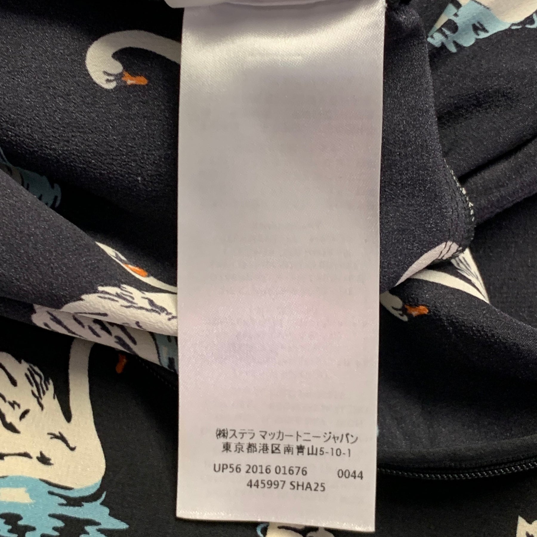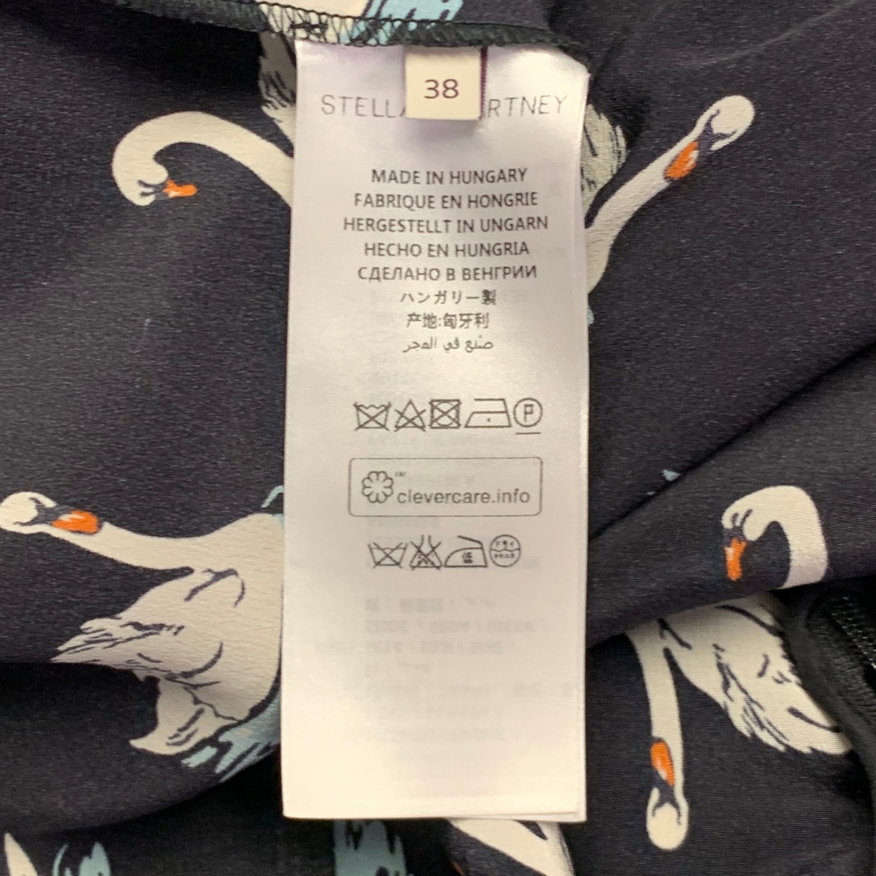 STELLA McCARTNEY 2016 Size 2 Black White Blue Silk Swans Point Collar Dress