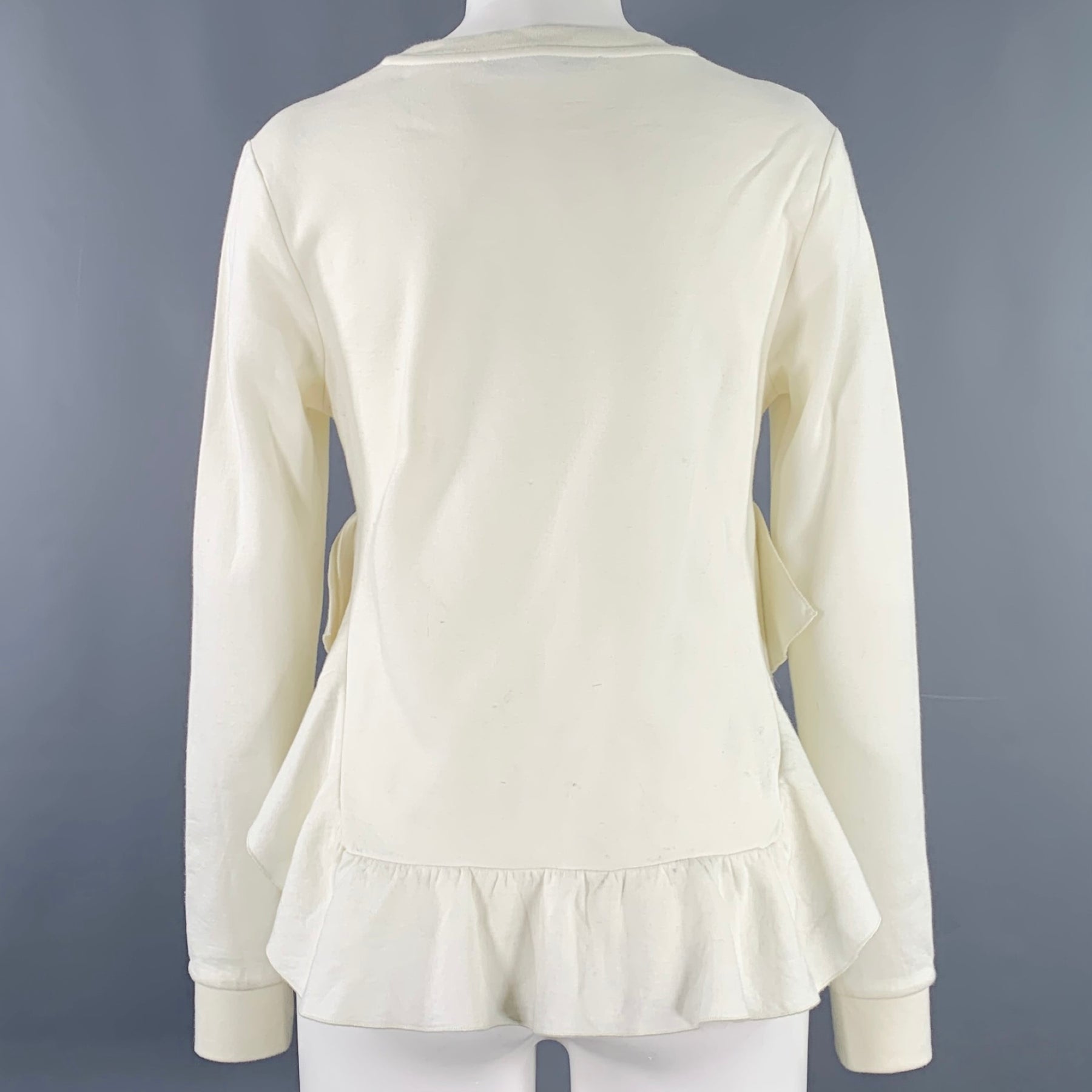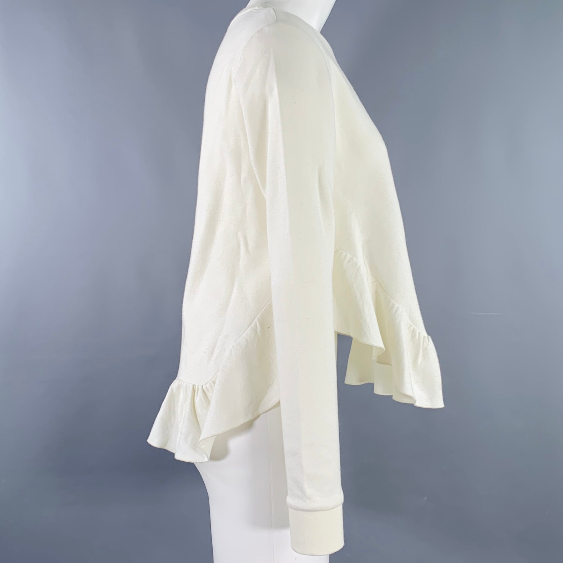 STELLA McCARTNEY Size 2 Cream Cotton Blend Ruffled Long Sleeve Casual Top