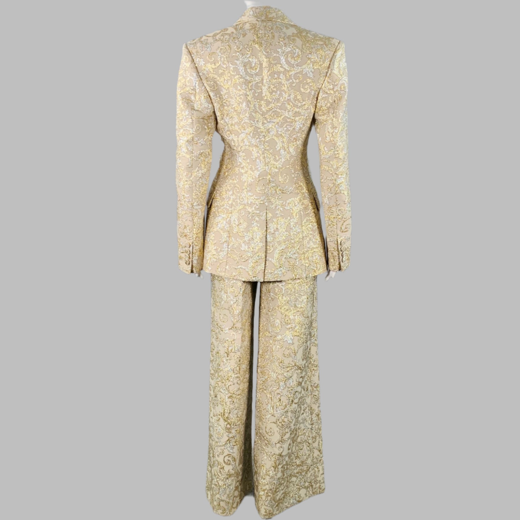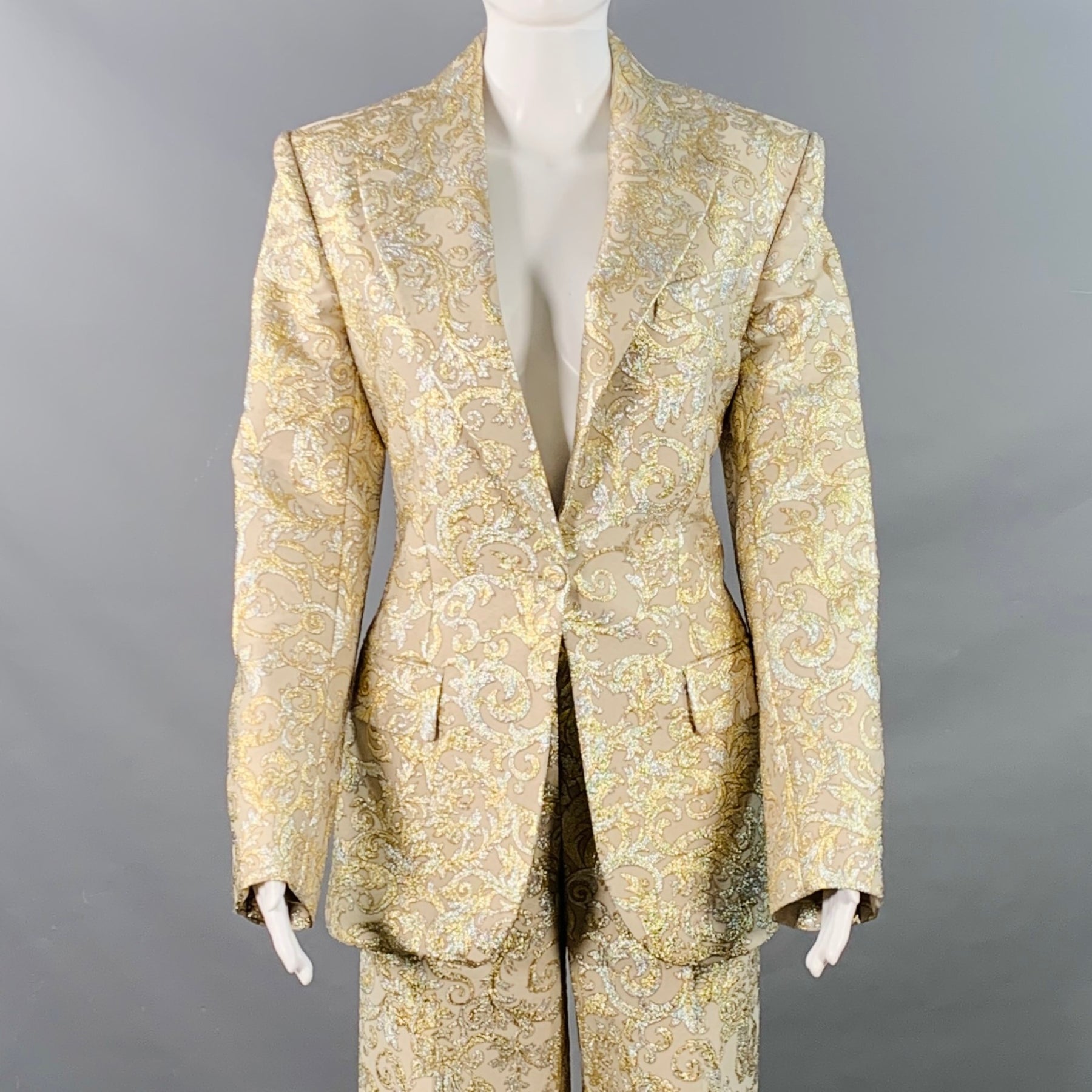 STELLA McCARTNEY Size 2 Metallic Gold Silver Polyamide Blend Jacquard Peak Lapel Pantsuit