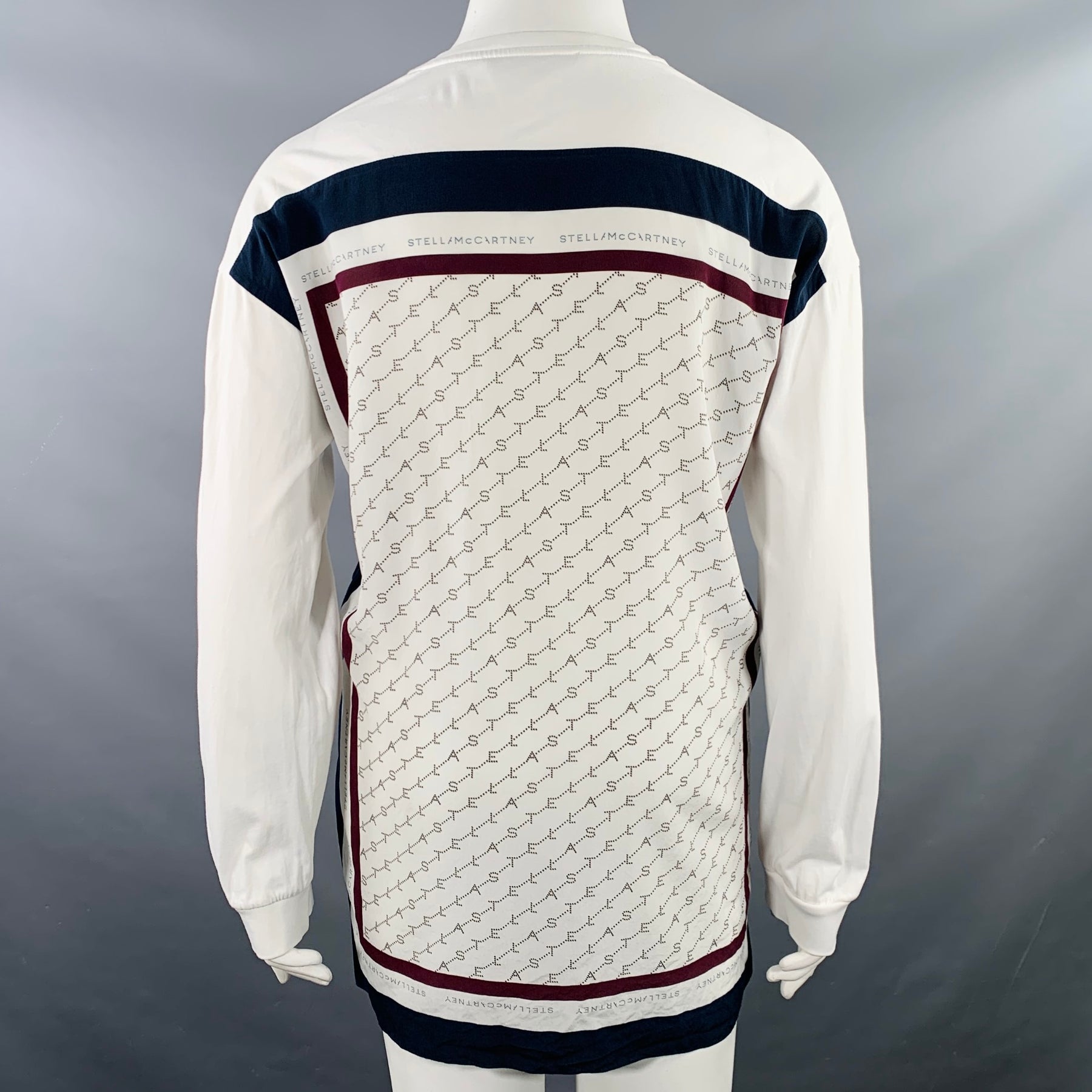 STELLA McCARTNEY Size L White Burgundy Navy Cotton Logo Pullover