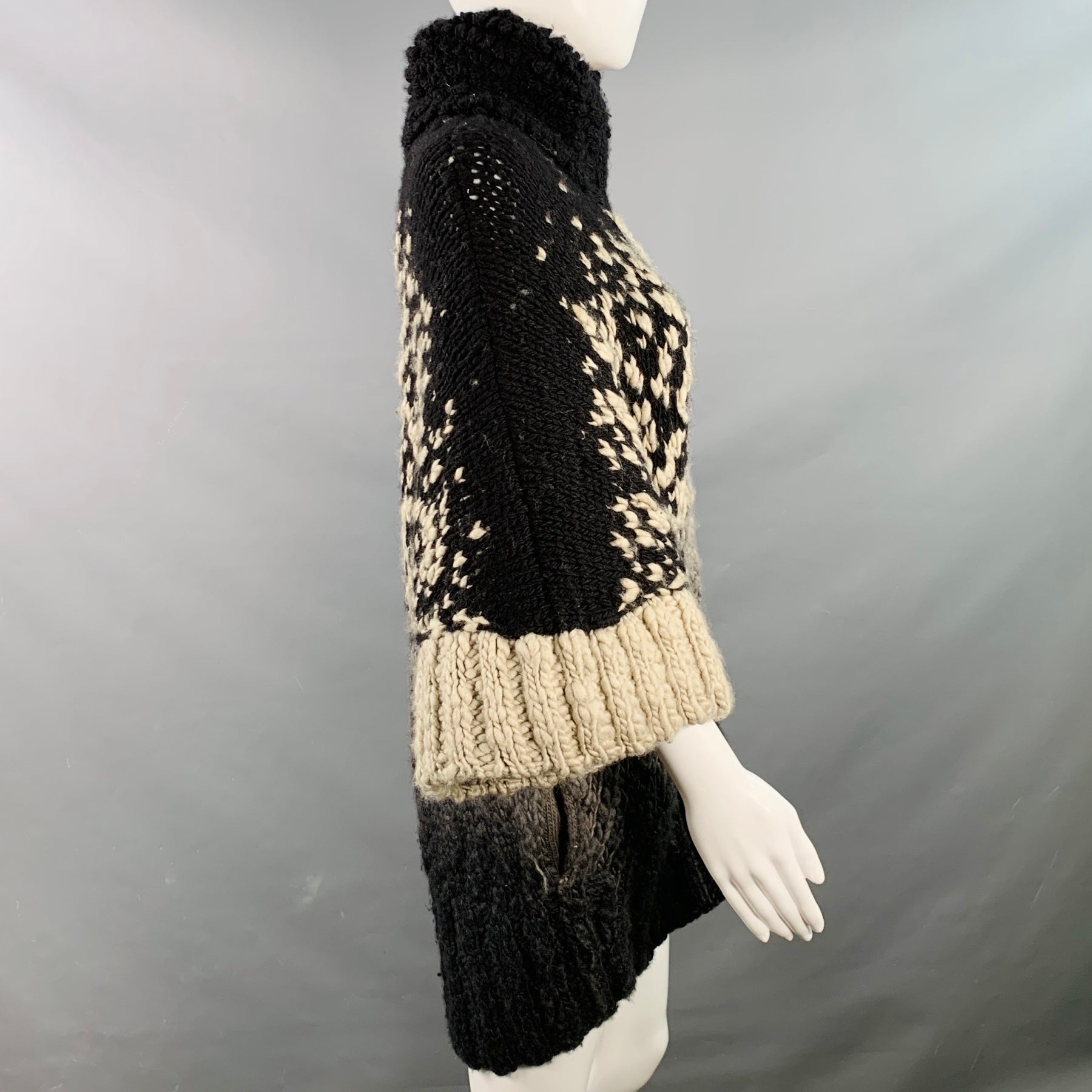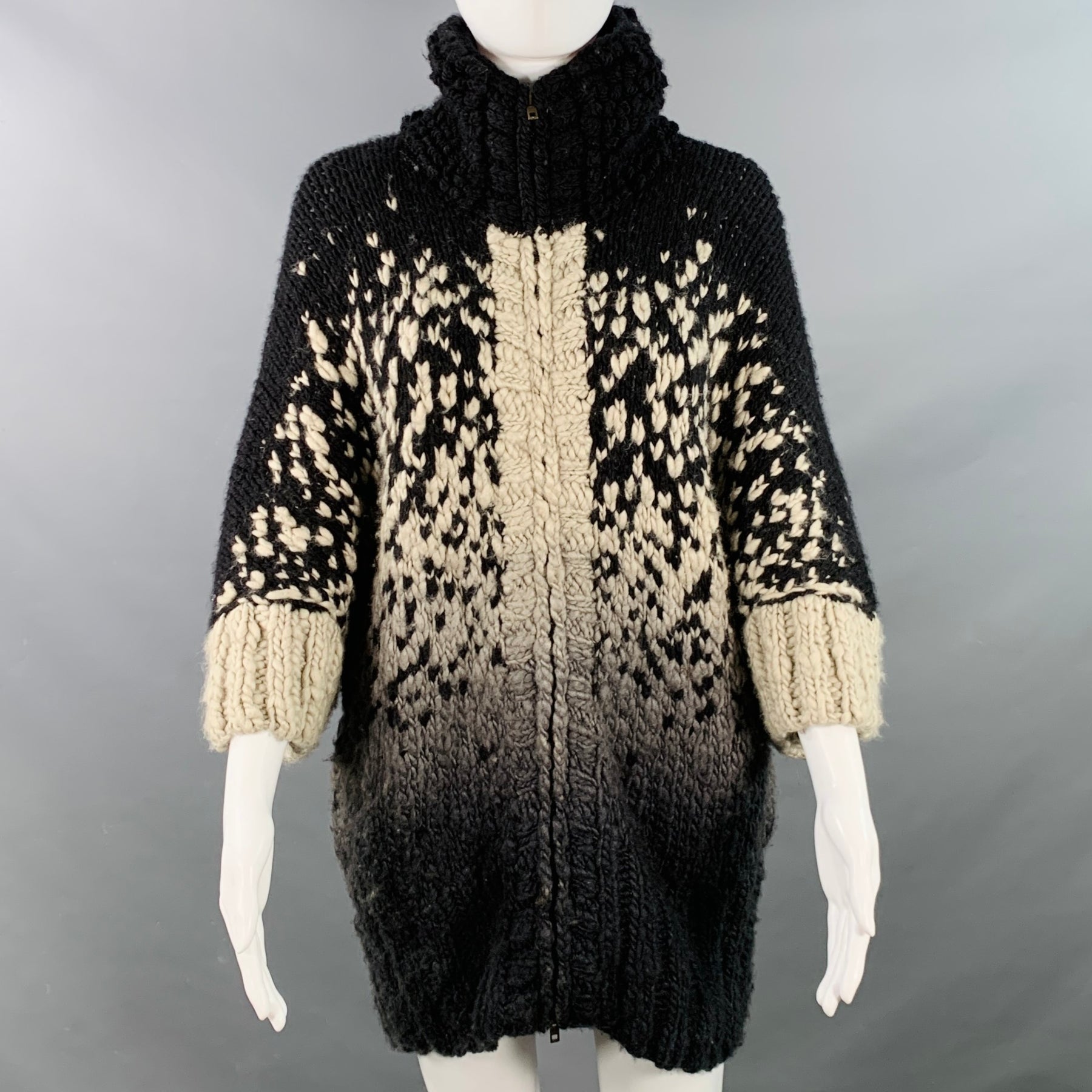 STELLA McCARTNEY Size S Black Grey Wool Silk Ombre Chunky Knit Zip Up Coat
