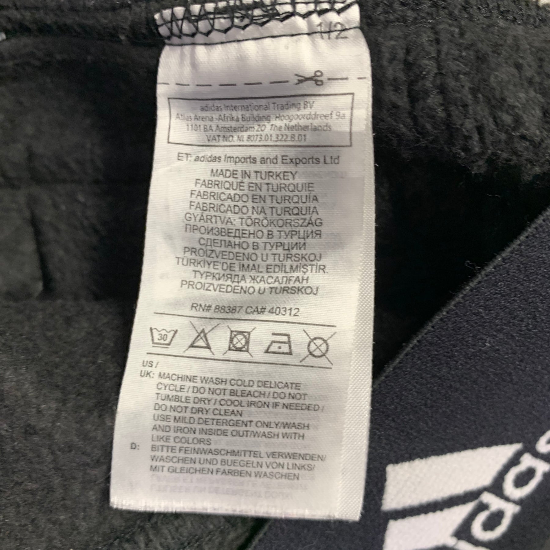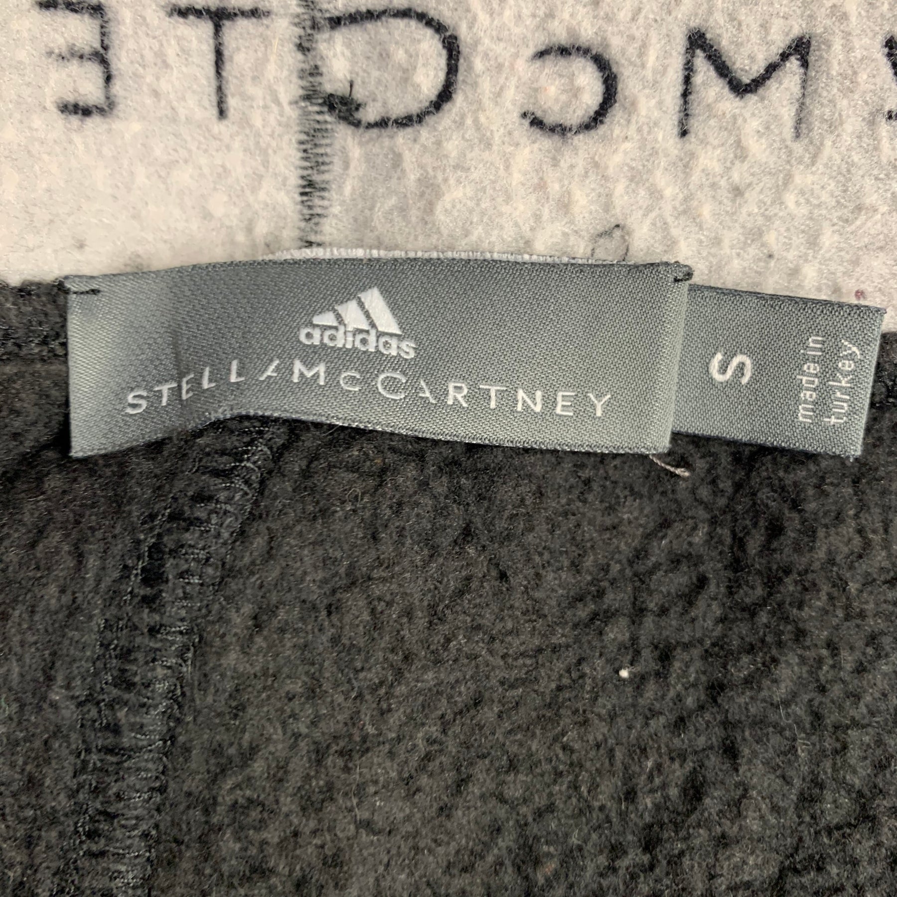 ADIDAS x STELLA McCARTNEY shorts in a black cotton polyester blend fabric featuring white stitched logo details, one pocket with silver tone metal zipper, and elastic waistband closure.