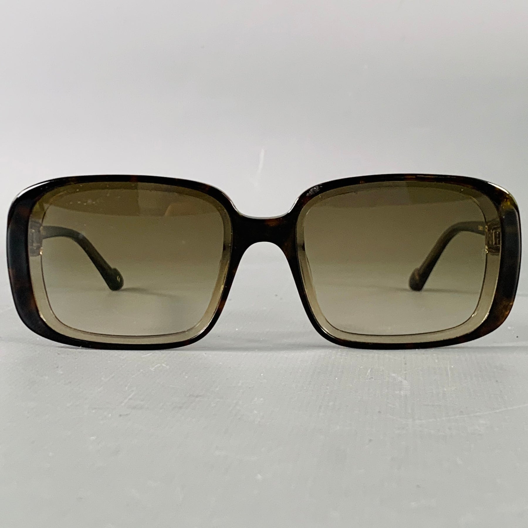 SUNDAY SOMEWHERE "Luna" sunglasses in a brown tortoiseshell acetate featuring a rectangular shape and brown ombre tinted lenses.
