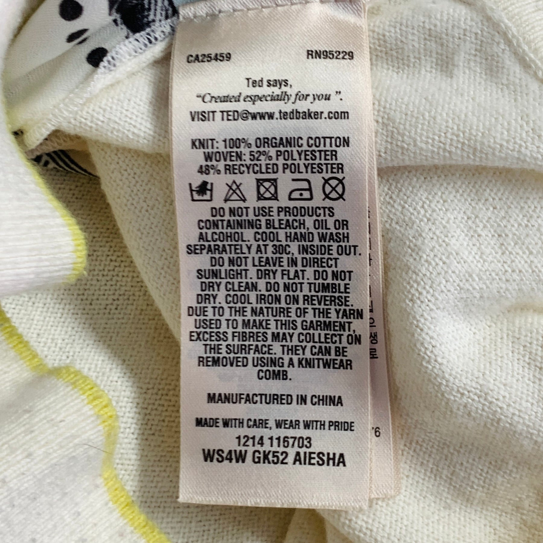 TED BAKER Size L Aiesha Cream Pink Blue Cotton Figures Mixed Fabrics Pullover