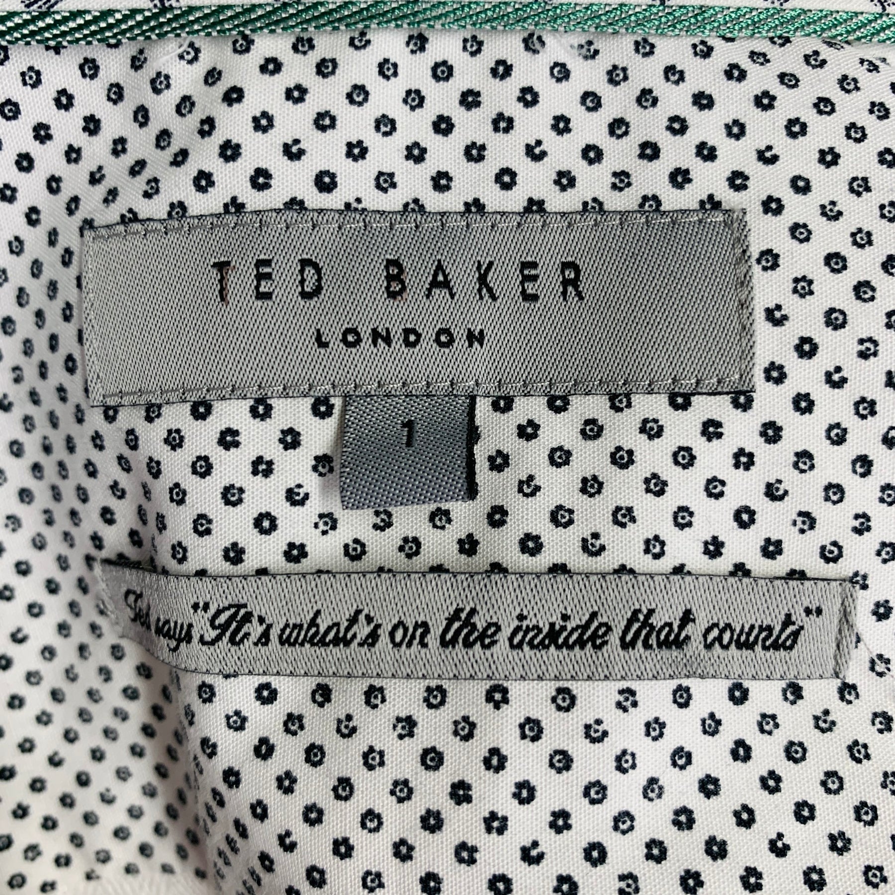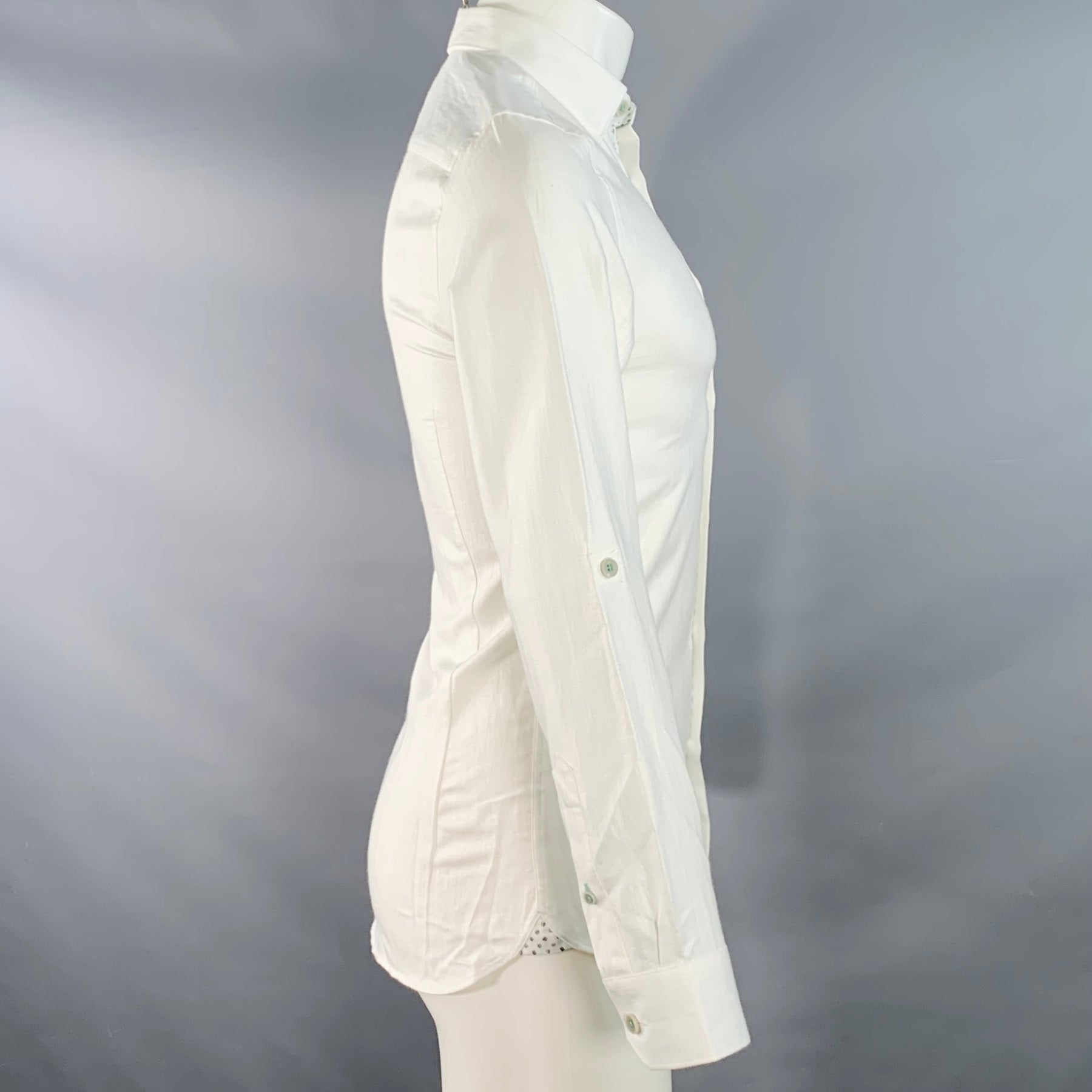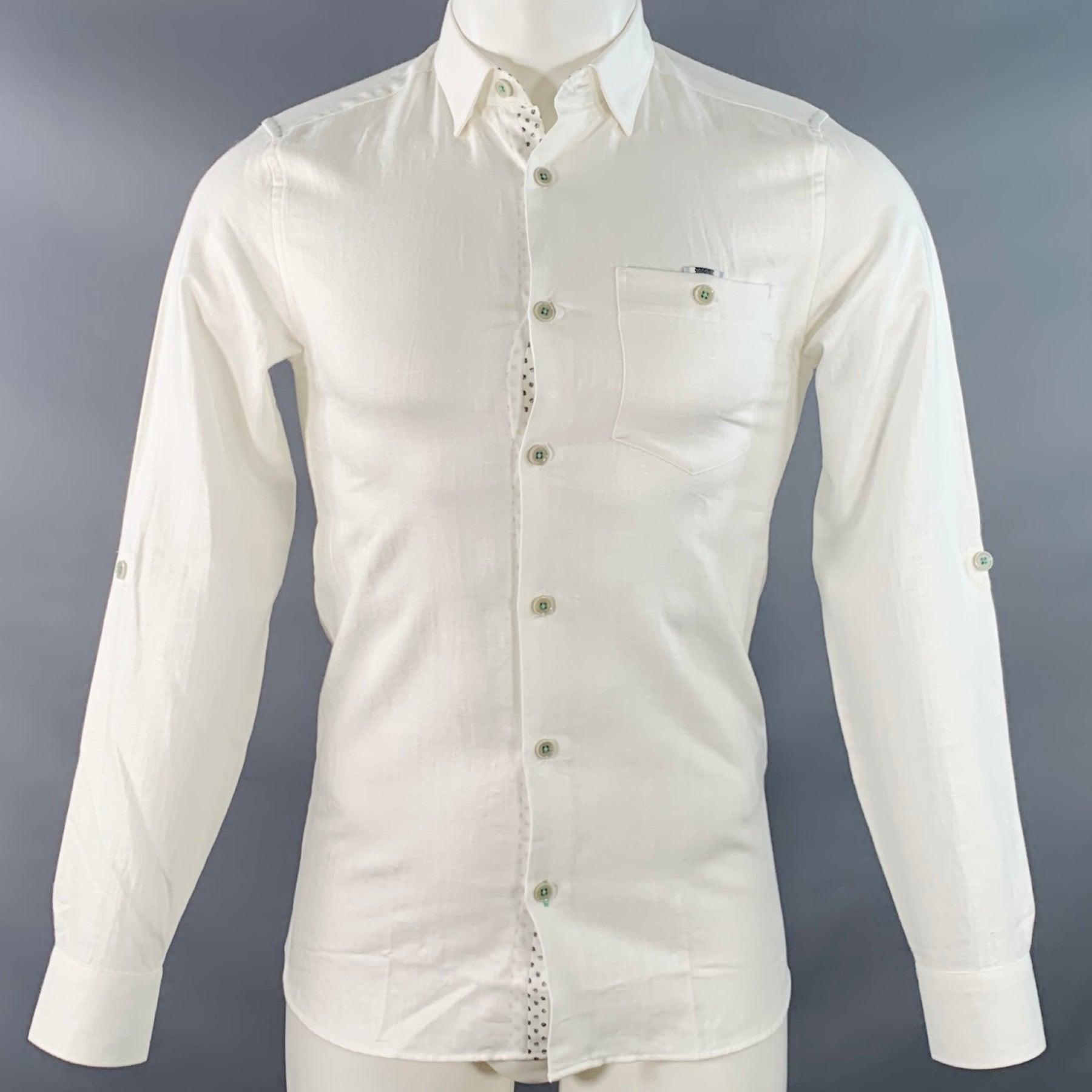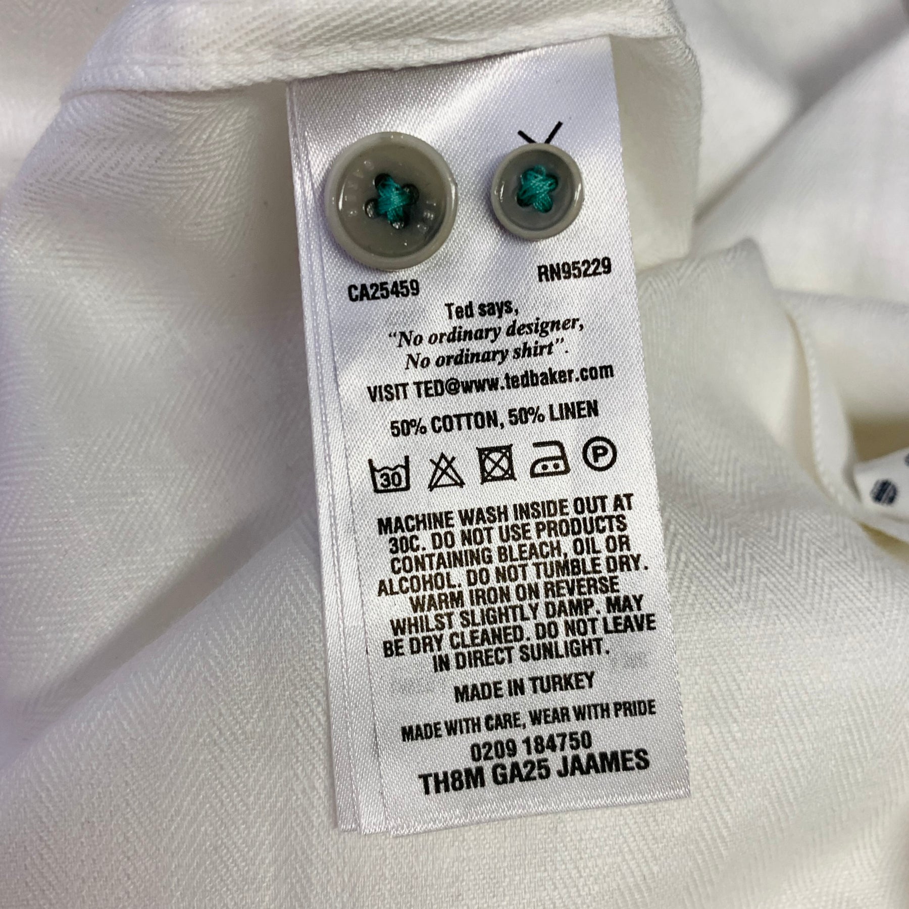 TED BAKER Size XS Jaames White Herringbone Cotton Linen One Pocket Roll Tab Long Sleeve Shirt
