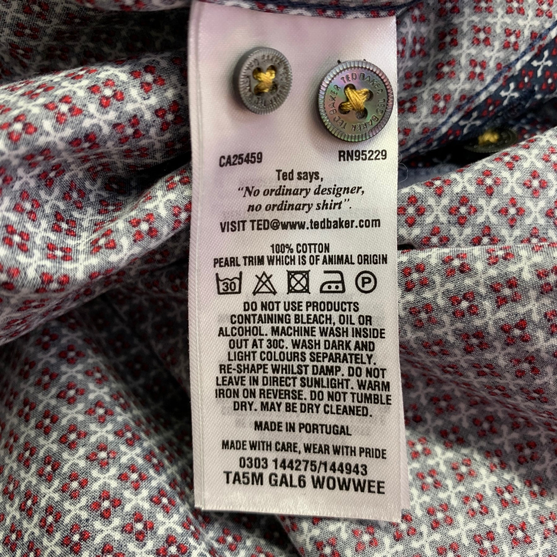 TED BAKER Size XS Wowee Navy Red Abstract Floral Cotton Long Sleeve Shirt