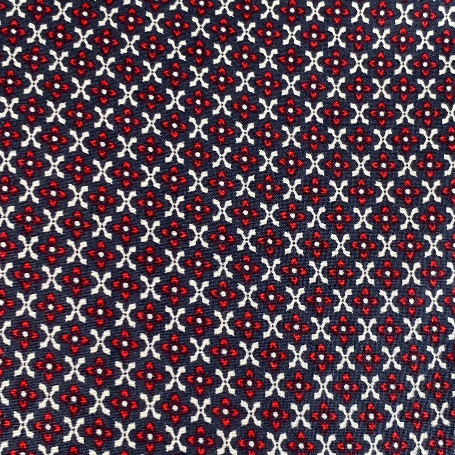 TED BAKER LONDON "Wowee" long sleeve shirt in a navy and red cotton woven fabric featuring an abstract floral pattern, spread collar, and button closure.