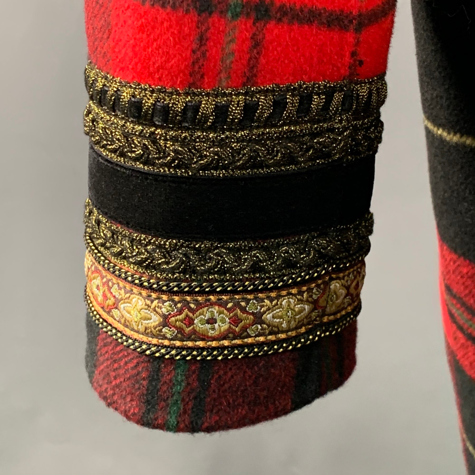 THE KOOPLES Size S Red Black Yellow Wool Blend Plaid Notch Lapel Coat