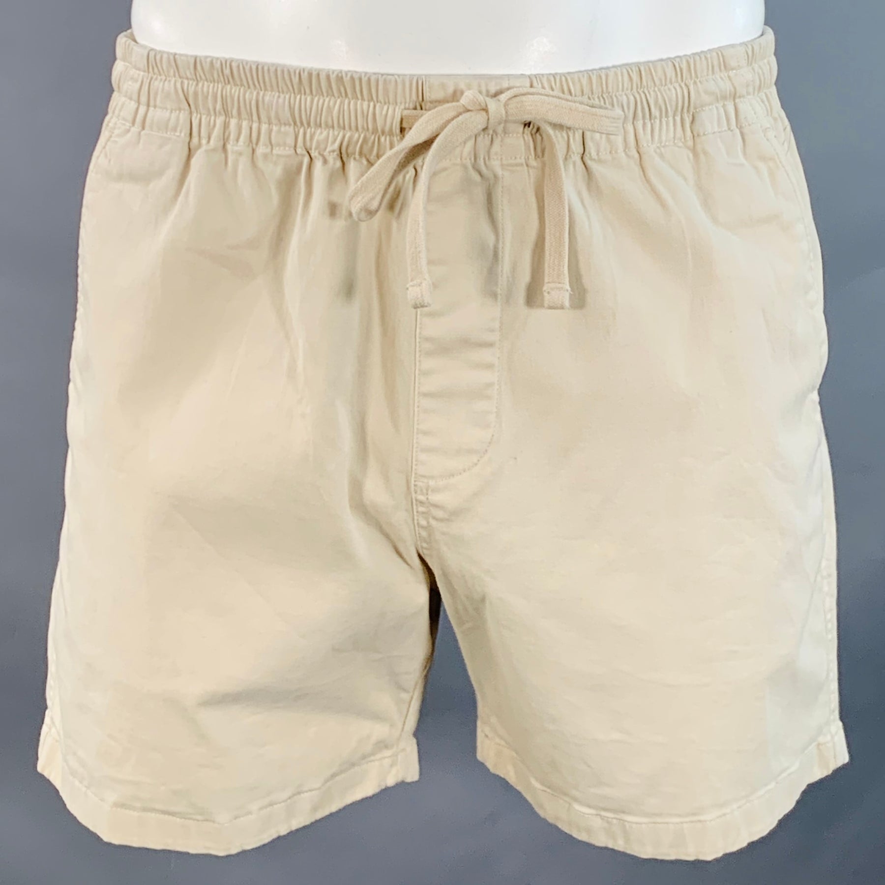 TODD SNYDER Size L Beige Twill Cotton Blend Drawstring Shorts