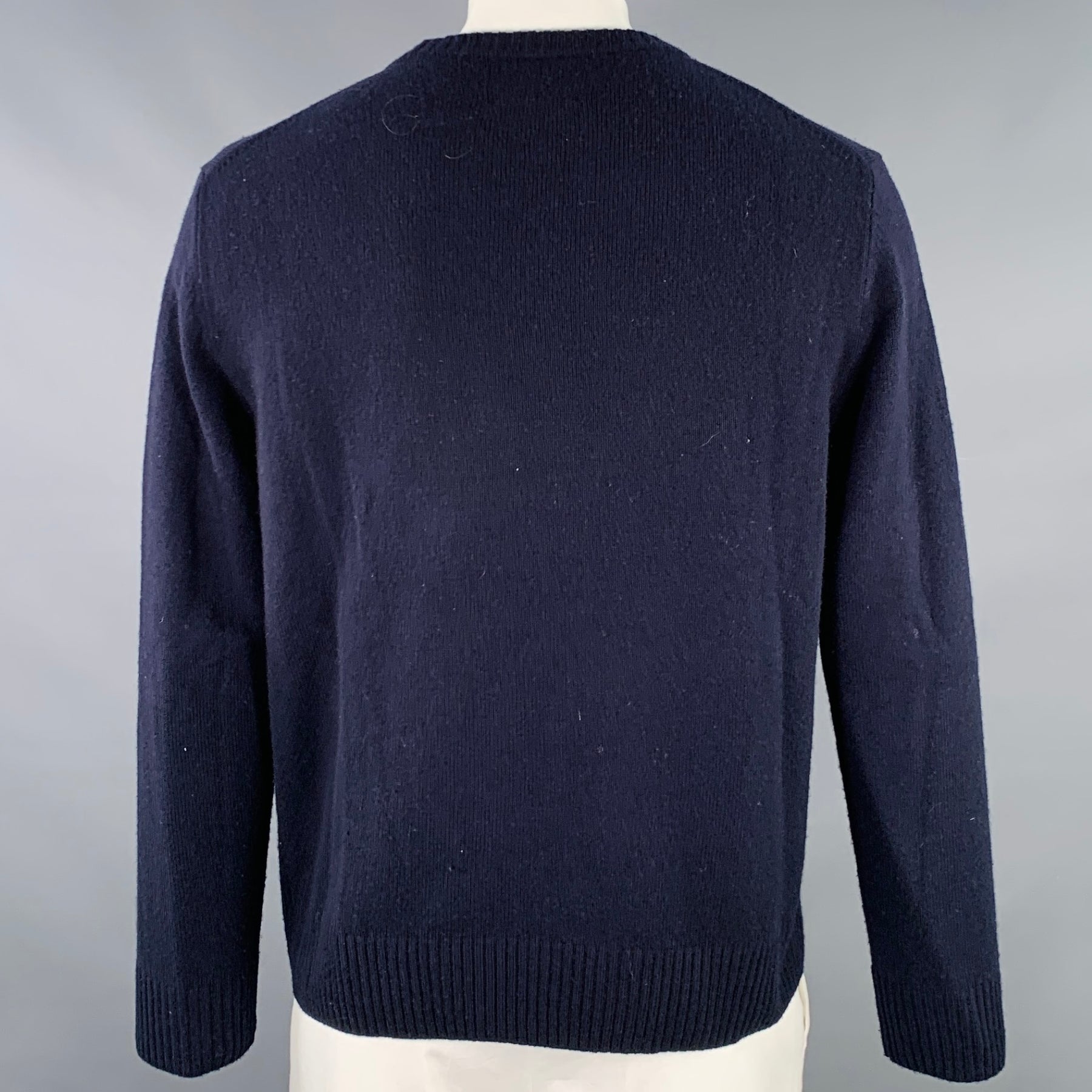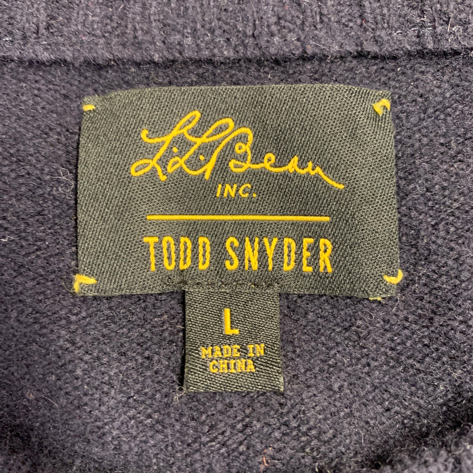 TODD SNYDER Size L Navy Brown Embroidery Merino Wool Boot Sweater