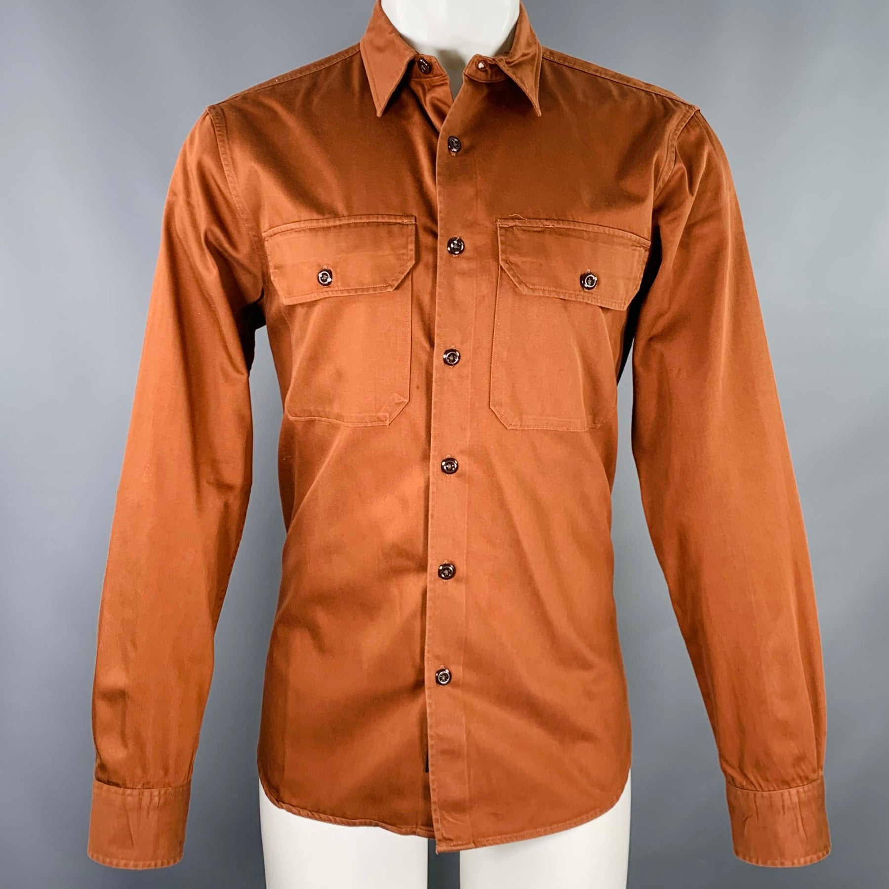 TODD SNYDER Size M Orange Rust Twill Cotton Patch Pockets Long Sleeve Shirt