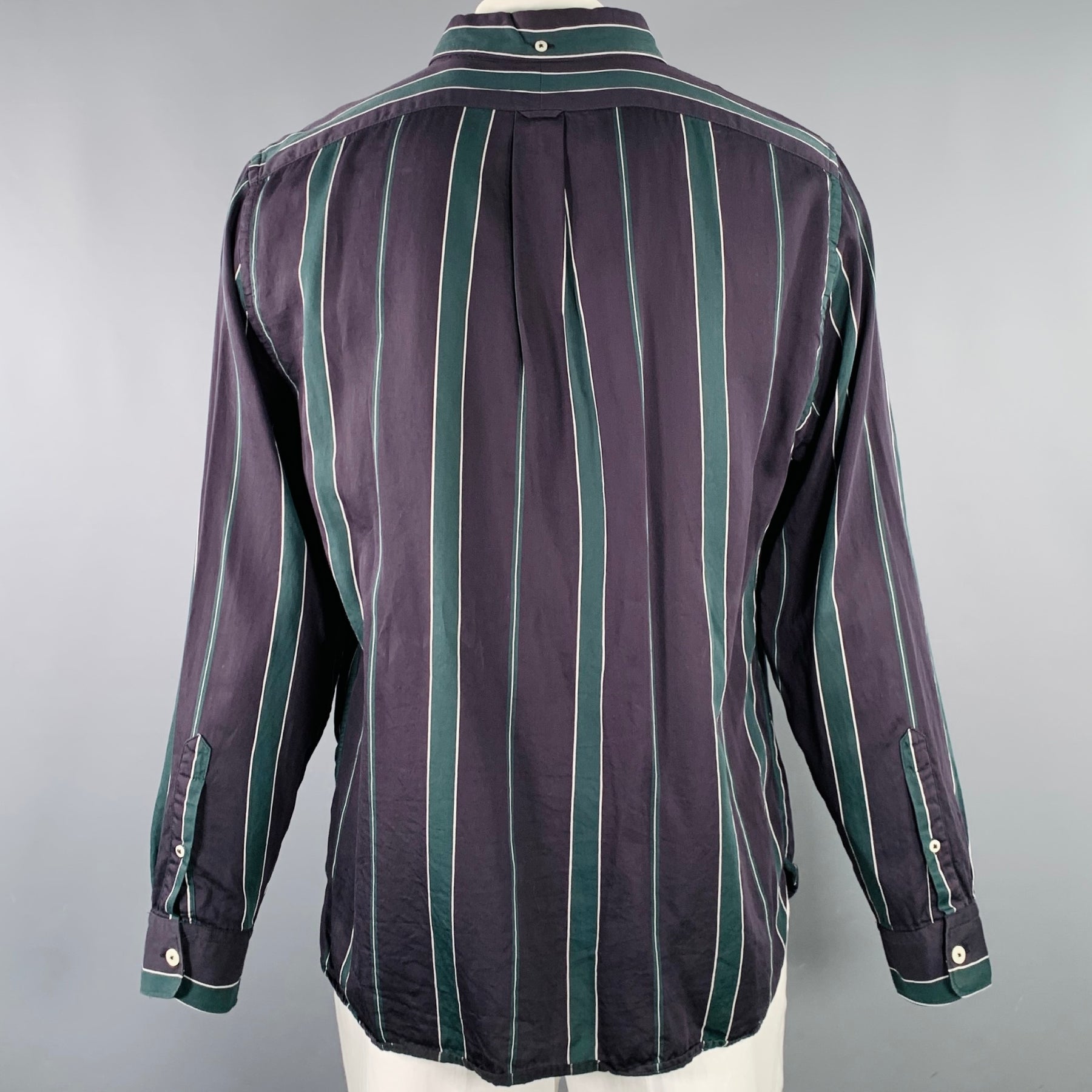 TODD SNYDER Size XL Black Dark Green Stripe Cotton Blend Long Sleeve Shirt