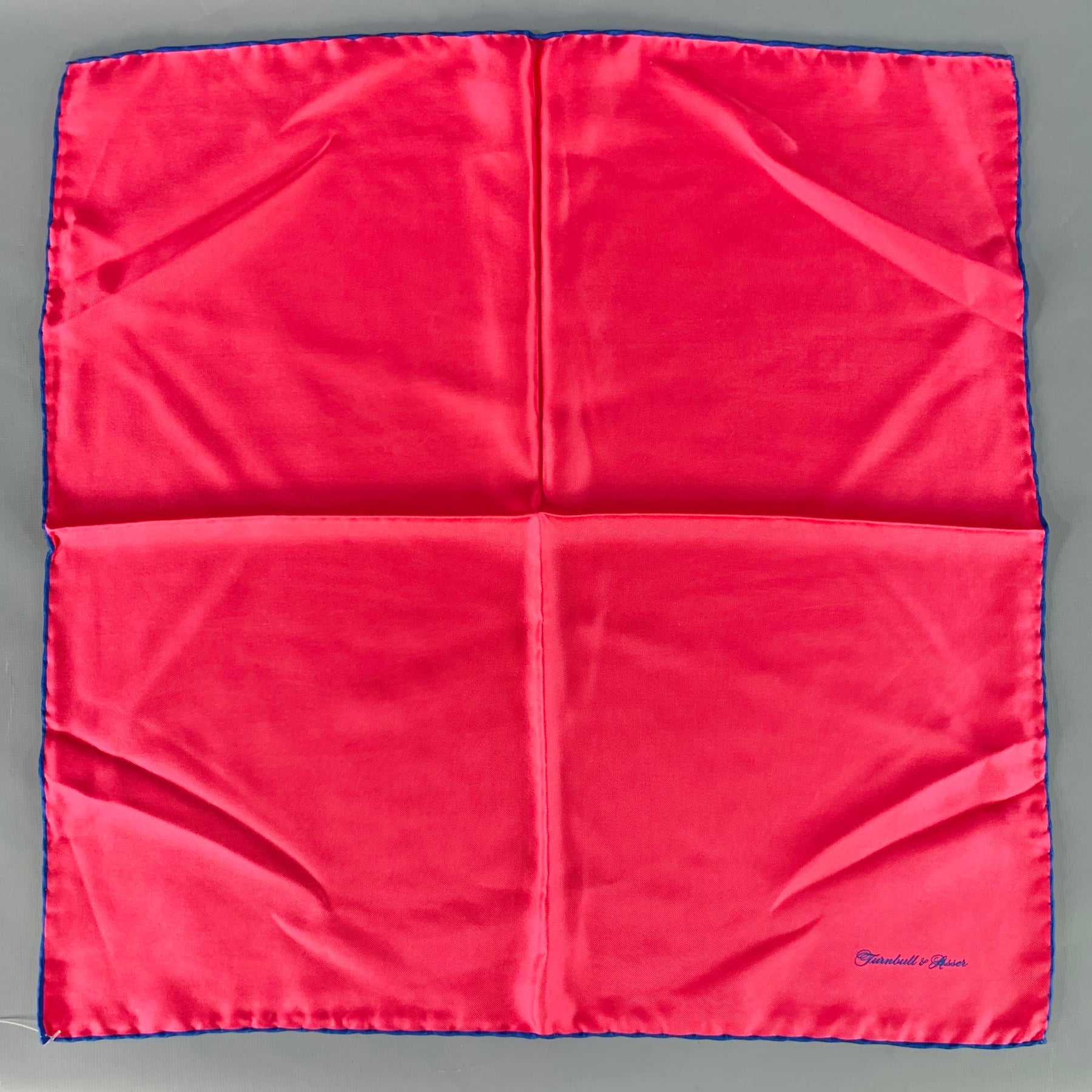 TURNBULL & ASSER pocket square in a red silk featuring contrasting blue silk edges, which are hand rolled.