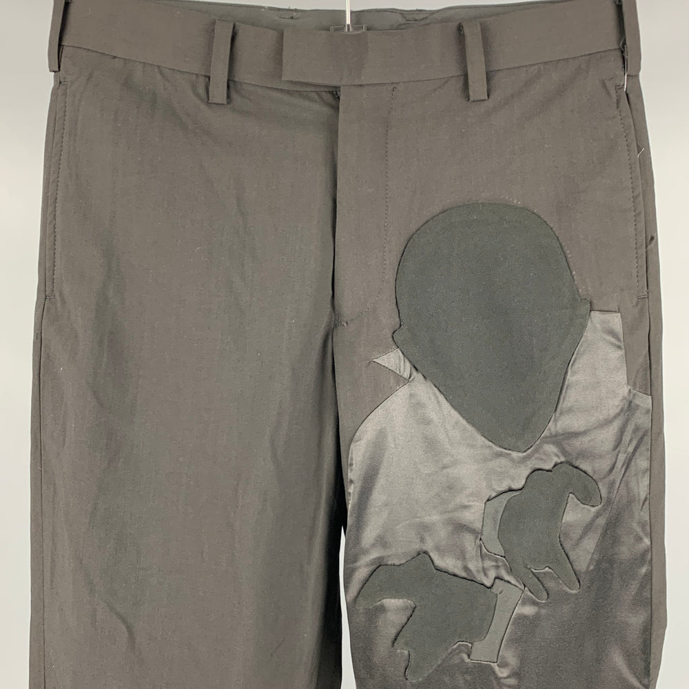UNDERCOVER Size 30 Black Applique Wool Blend Apron Dress Pants