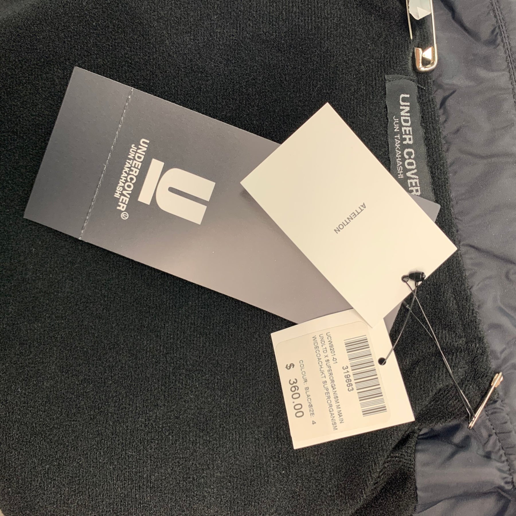 UNDERCOVER Jun Takahashi coat comes in a black polyester featuring a adjustable bottom ham, back "SUPERORGANISM" cartoon design, front pockets, and a snap button closure.