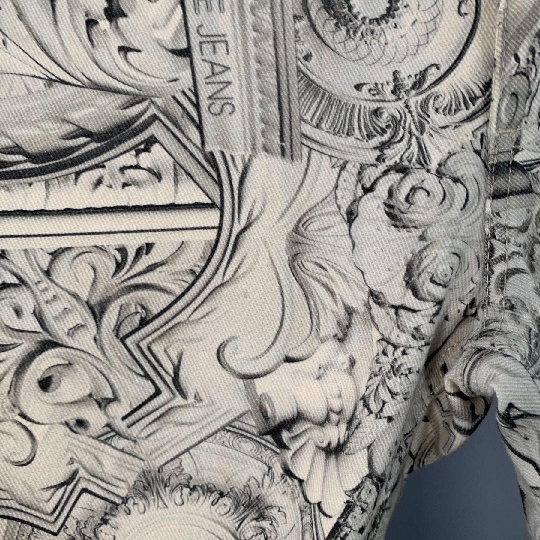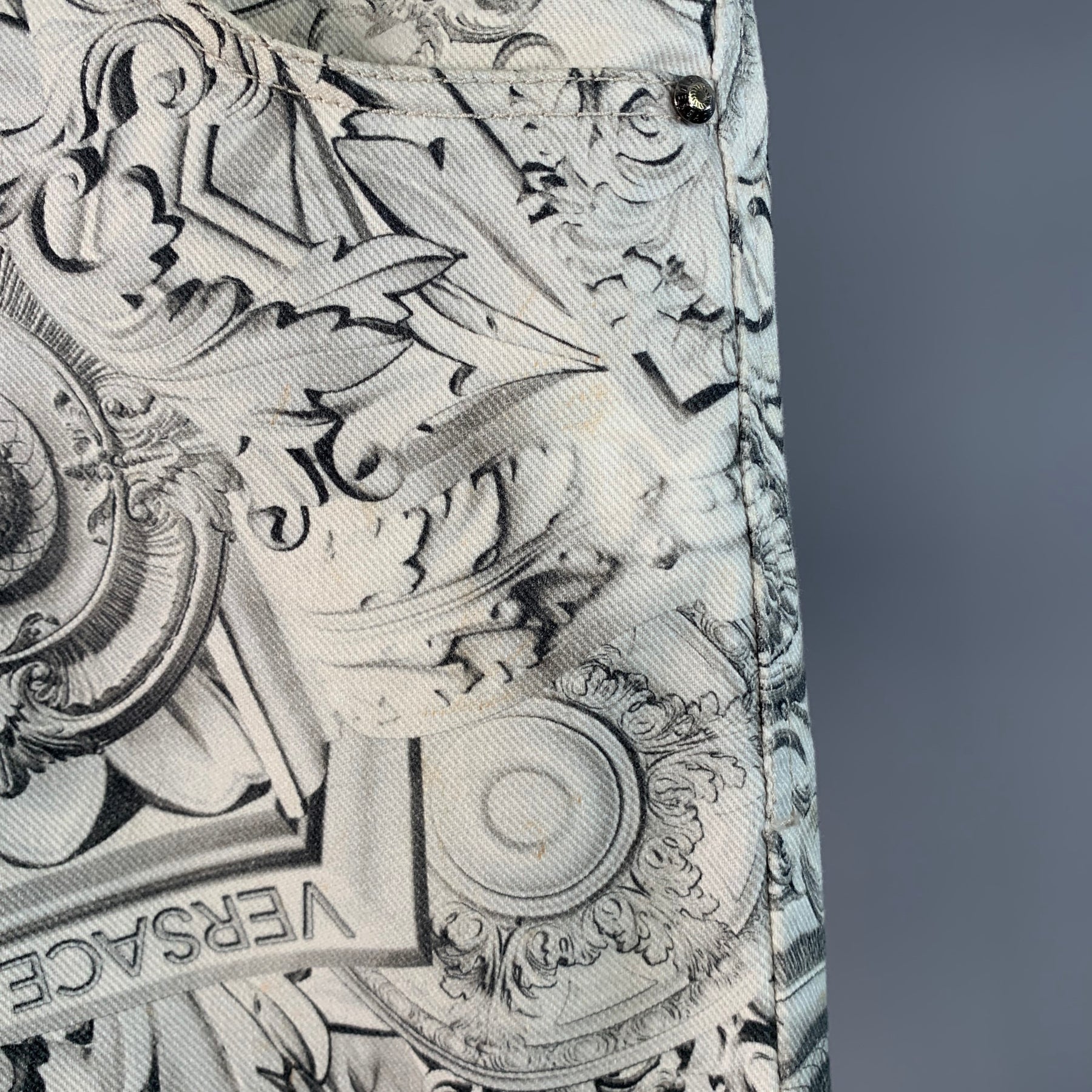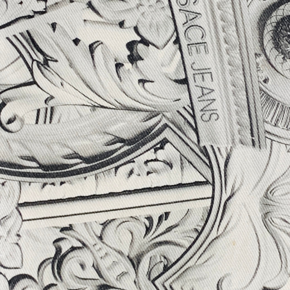 VERSACE JEANS Size 30 White Grey Logo Print Cotton Blend Slim Tapered Jeans