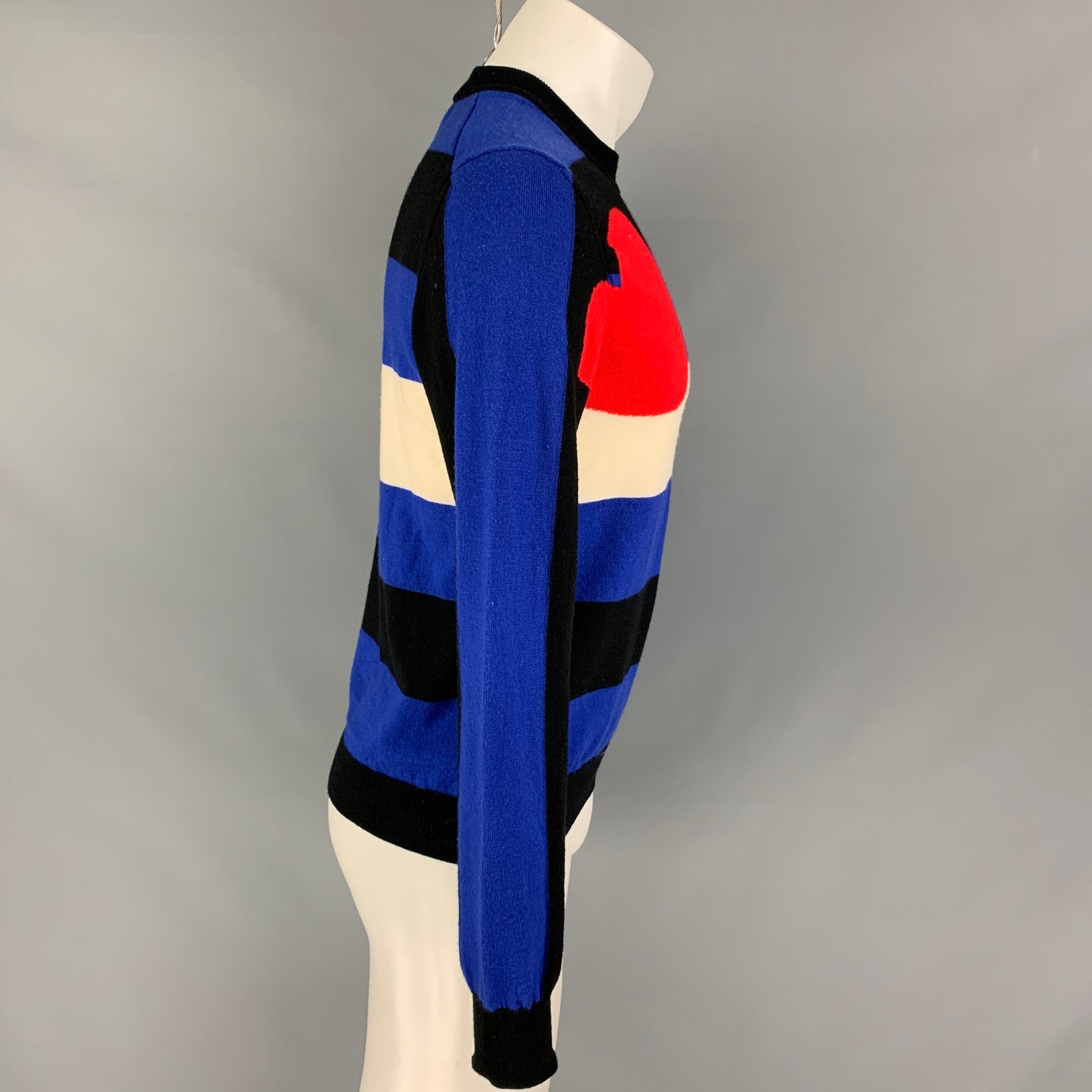 VETEMENTS x COMME des GARCONS SHIRT Size S Blue Black White Knitted Merino Wool Crew-Neck Pullover