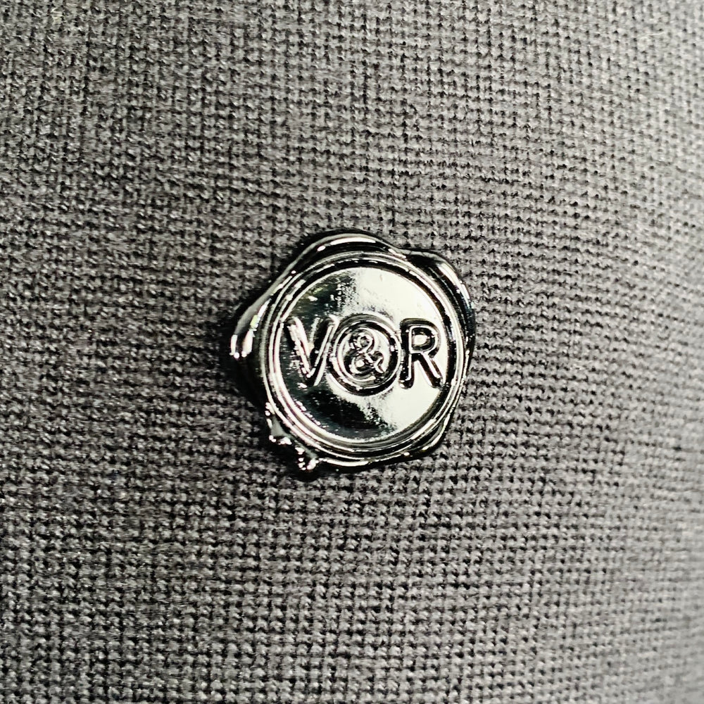 VIKTOR & ROLF "Monsieur" pullover in a black jersey knit featuring black acetate V&R ink seal logo, and turtleneck.