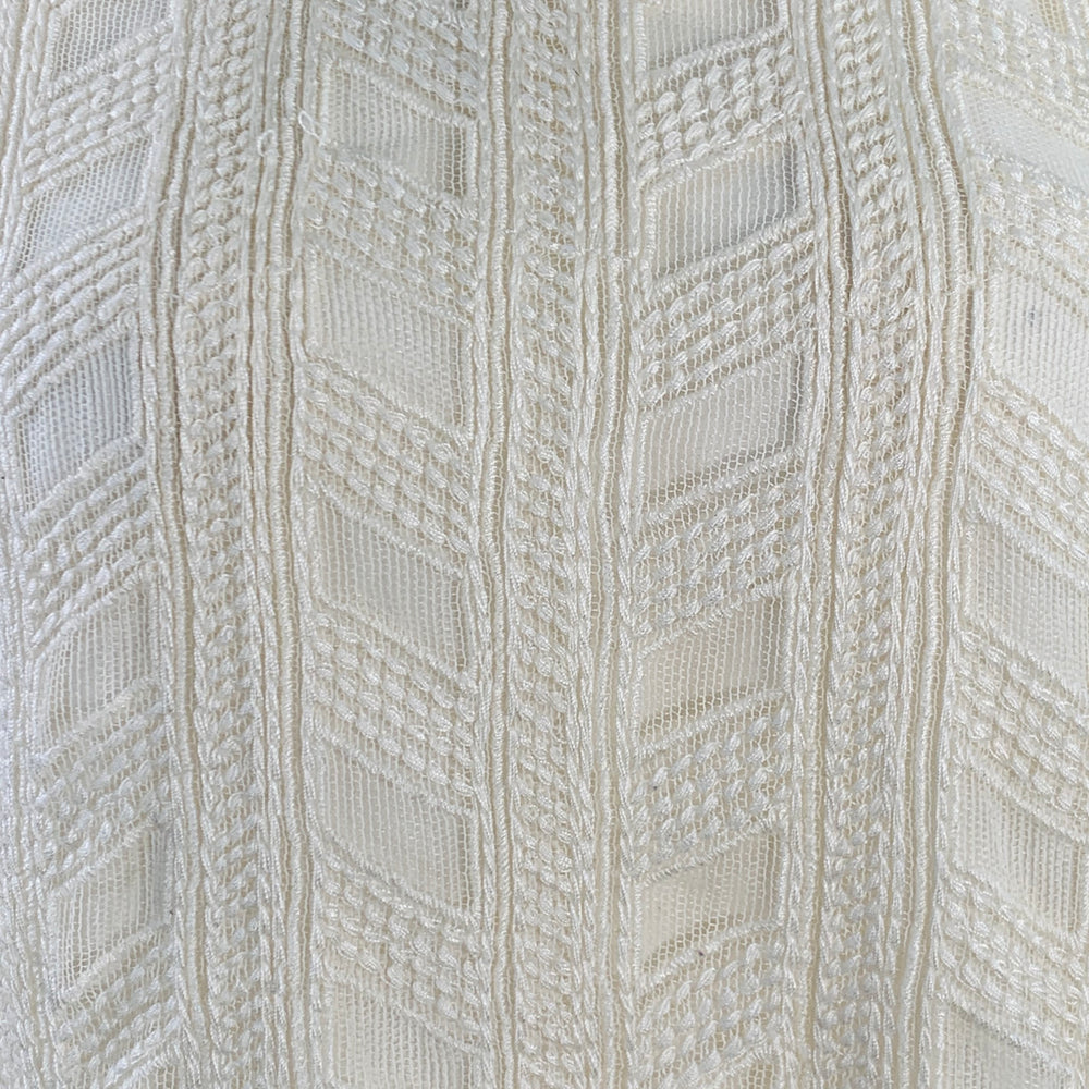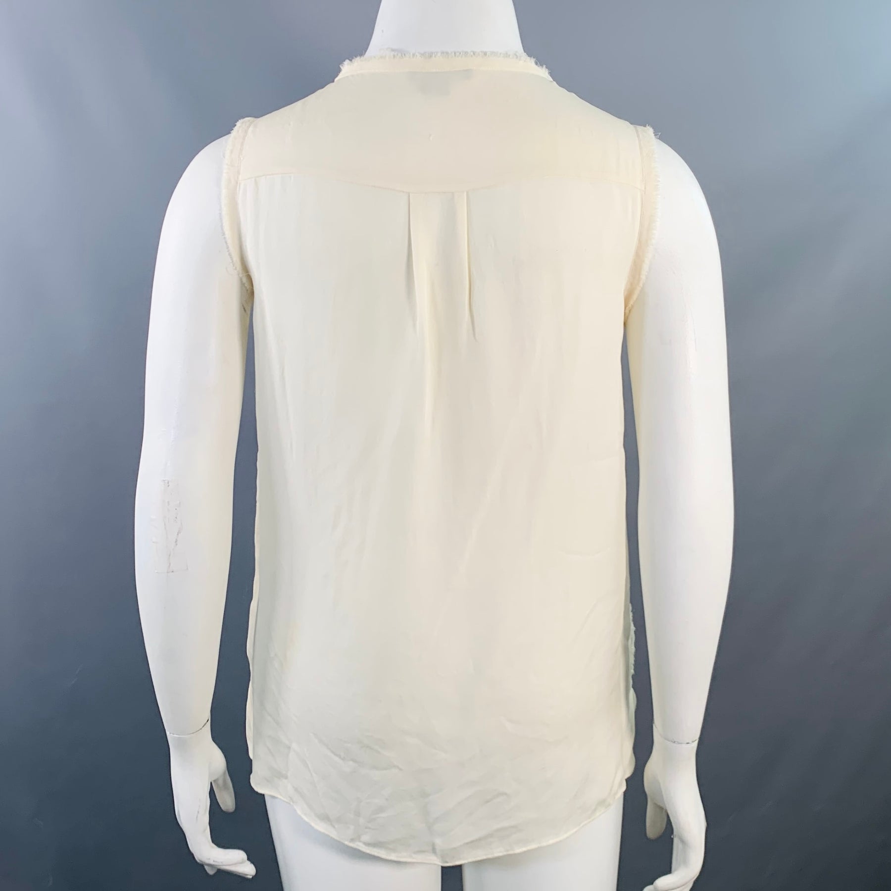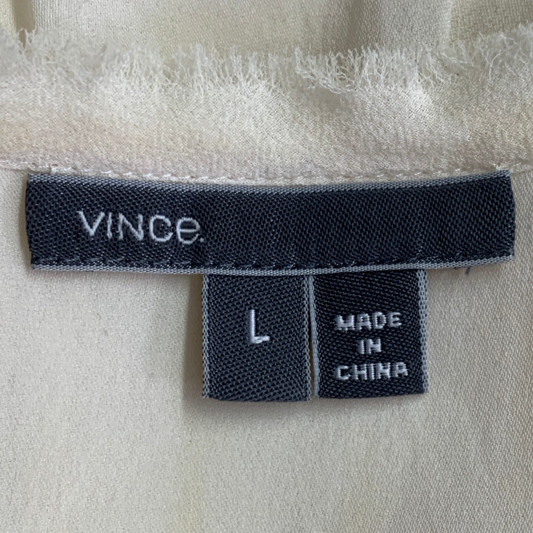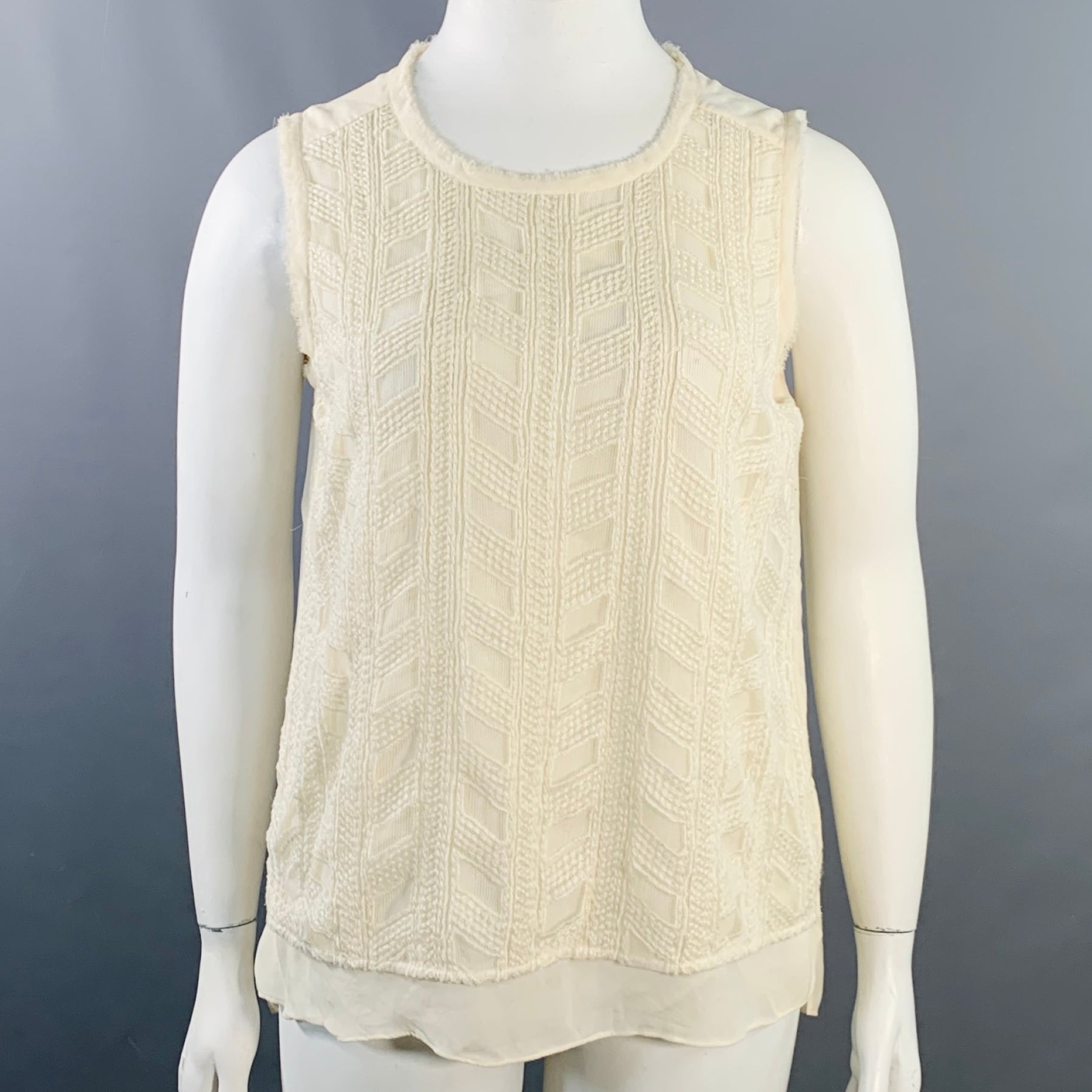VINCE Size L Cream Nylon Embroidered Geometric Raw Edge Sleeveless Casual Top