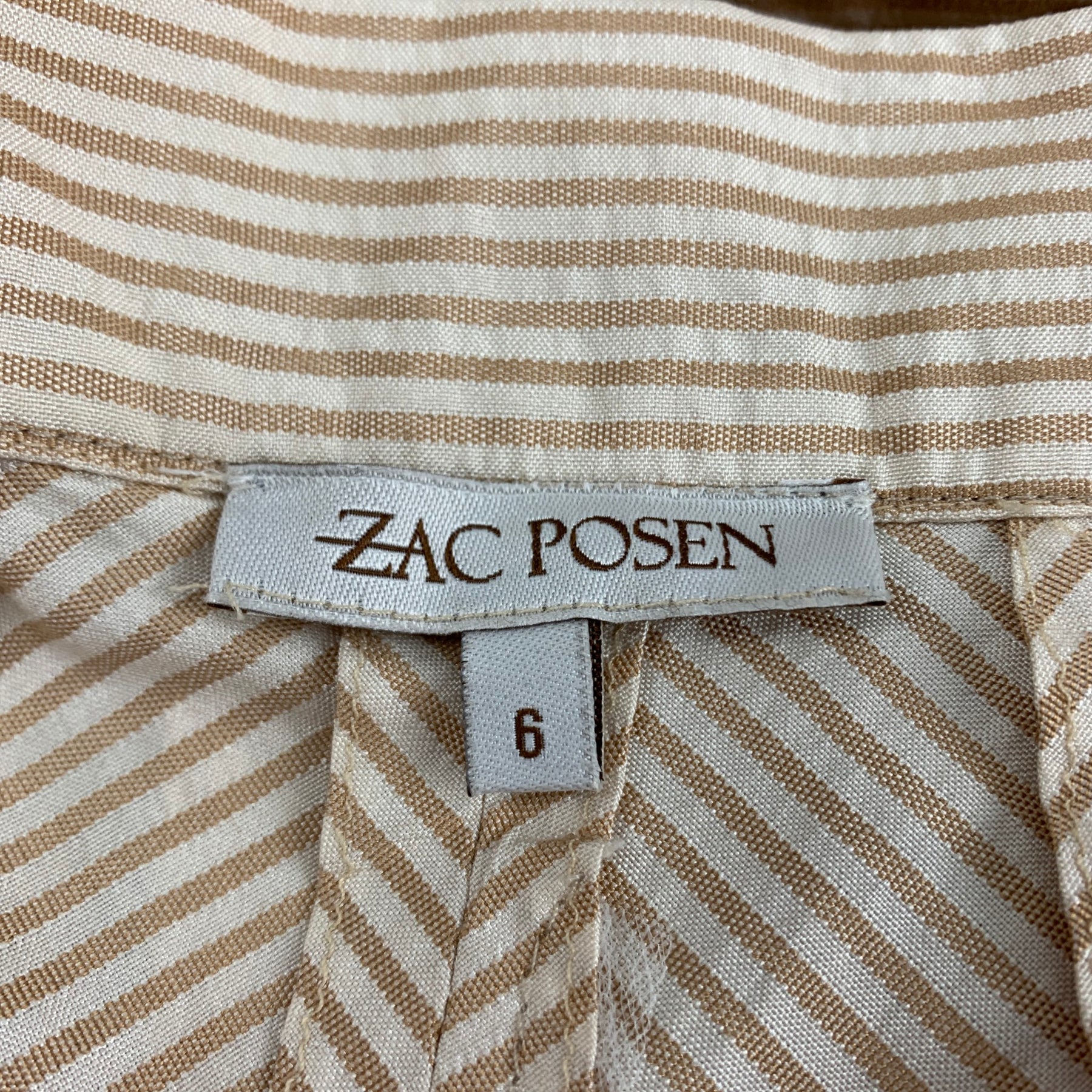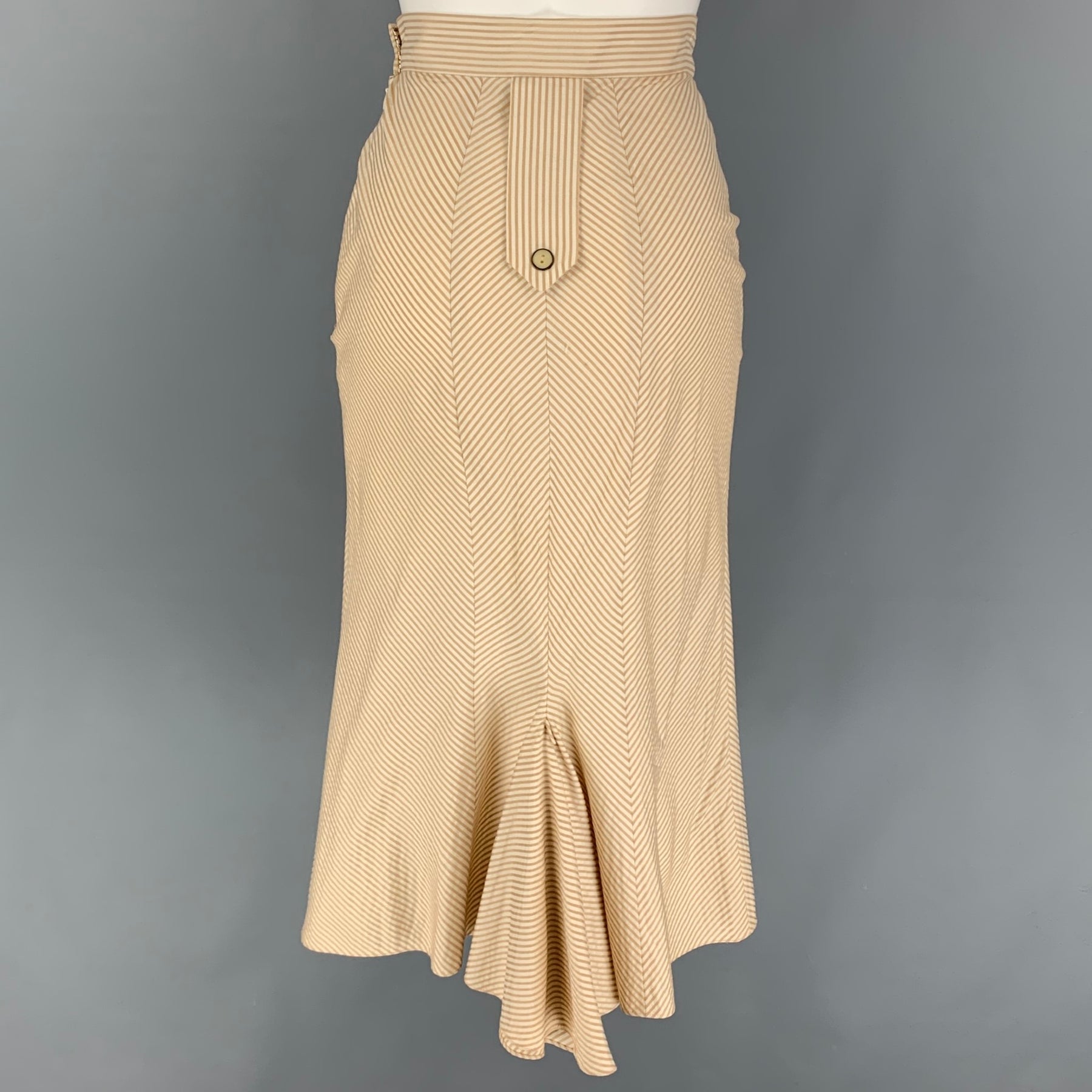 ZAC POSEN Size 6 Beige Cream Silk Stripe Mid-Calf Skirt