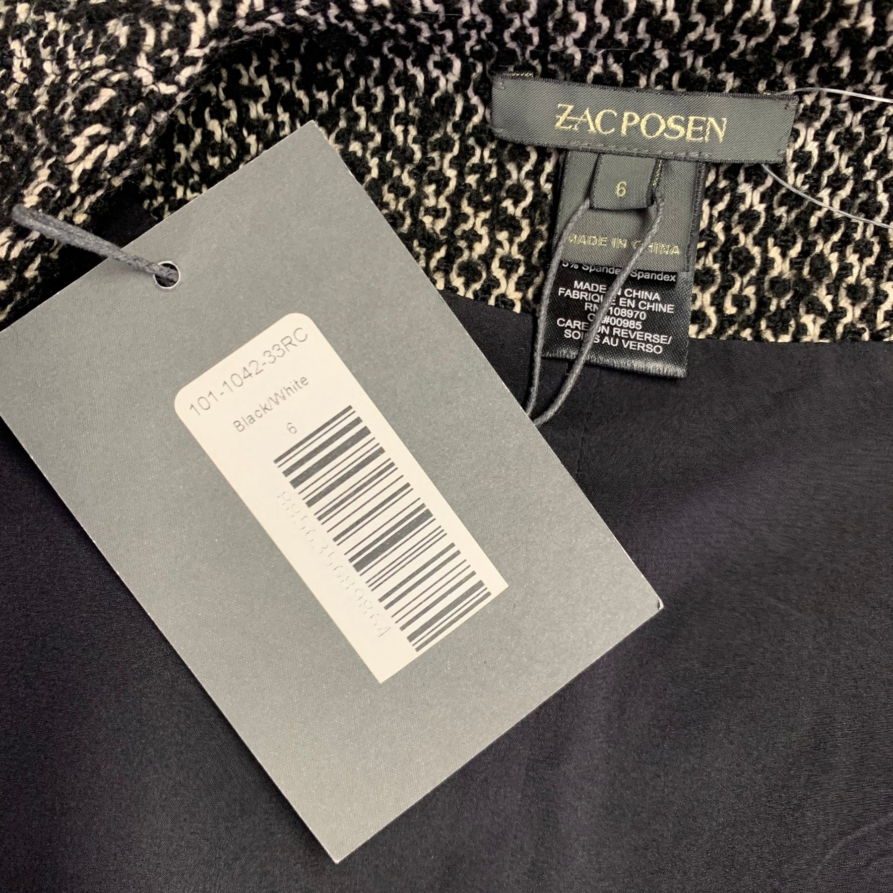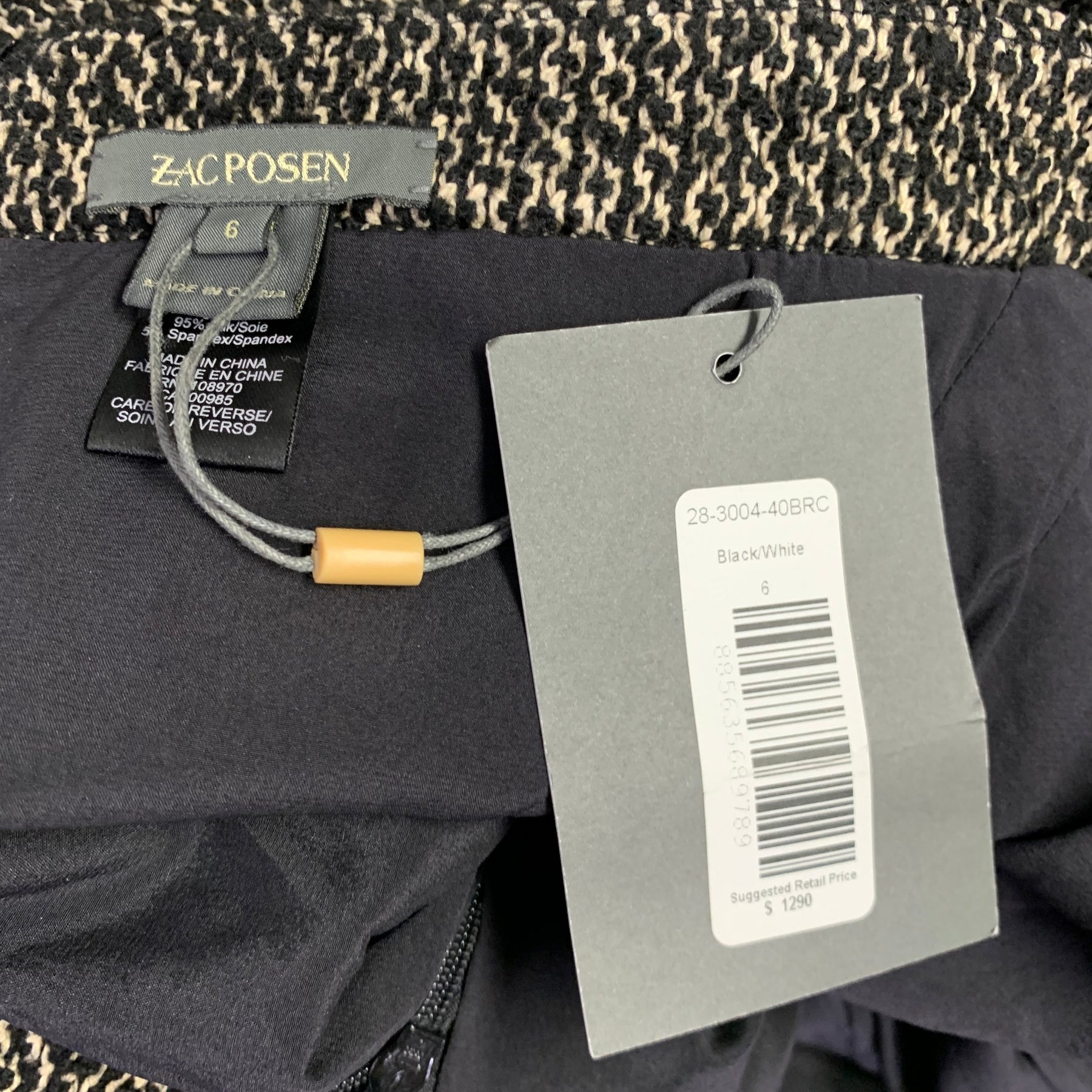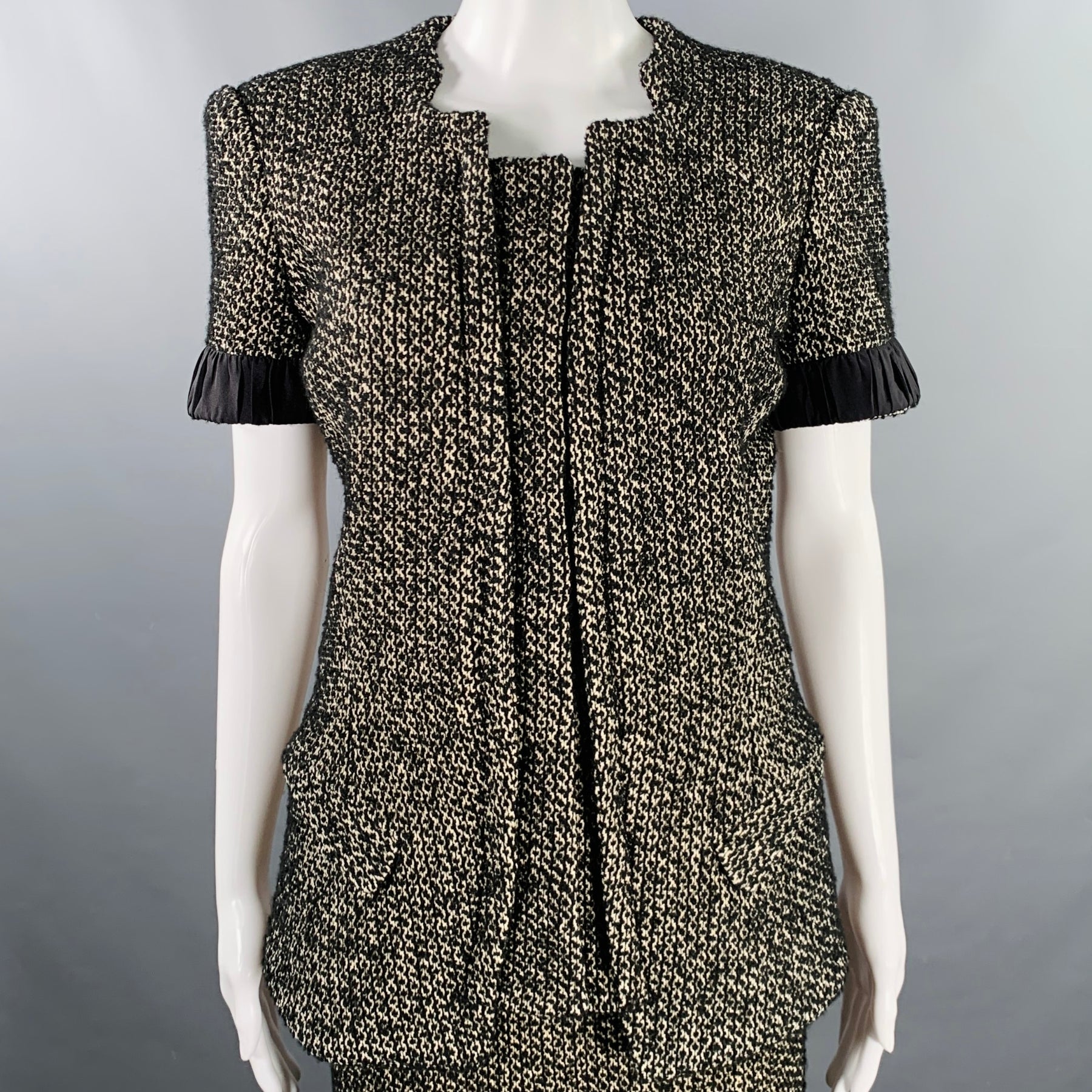 ZAC POSEN Size 6 Black White Cotton Blend Tweed Short Sleeve Skirt Suit