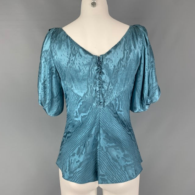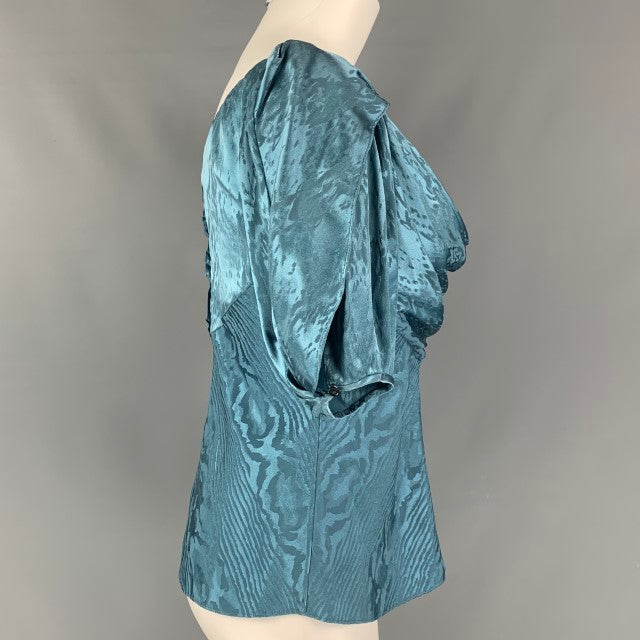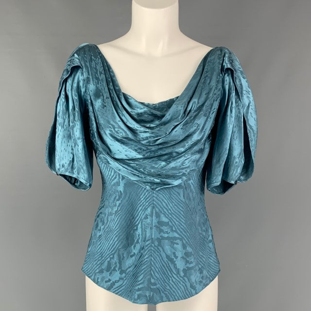 ZAC POSEN Size 6 Sea Foam Silk Marbled Draped Blouse