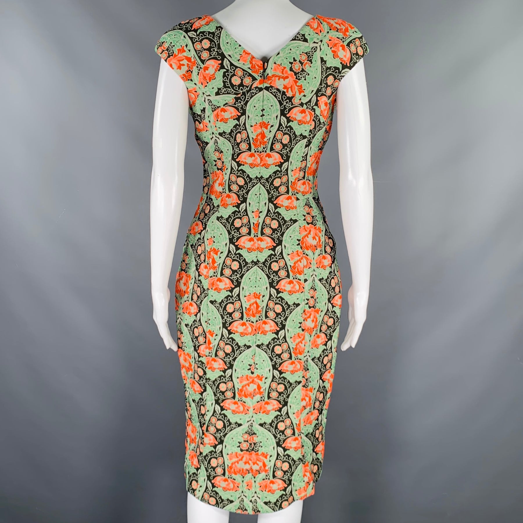 ZAC POSEN Size 8 Green Multi Color Cotton Blend Tapestry Sleeveless Dress