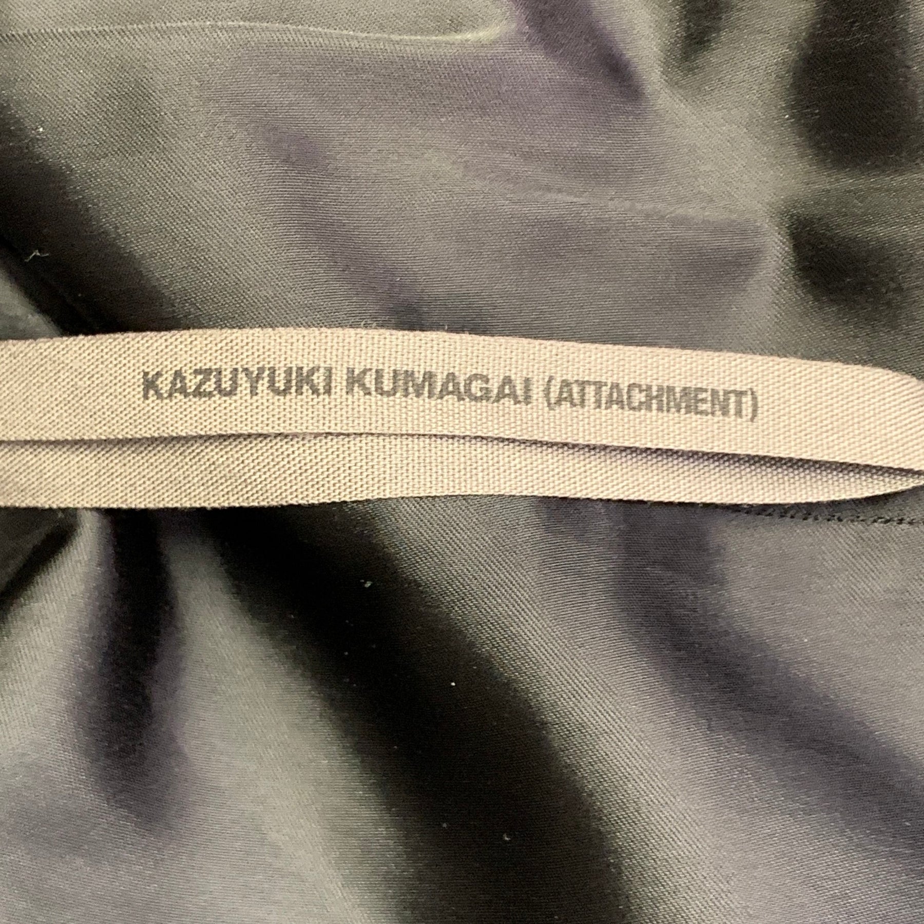 ATTACHMENT jacket in a black and grey wool featuring an all over textured design, notch lapel with removable hood, and double button closure.