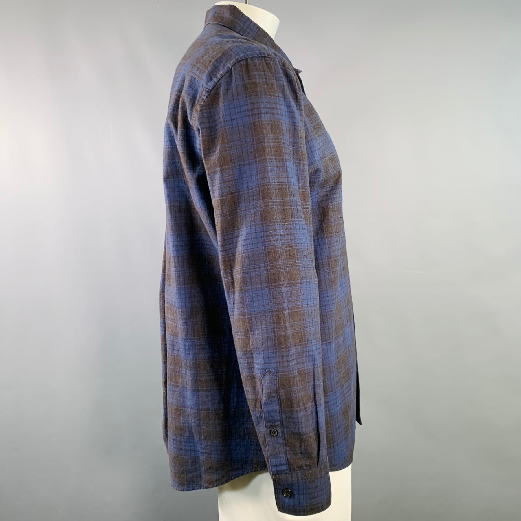 BILLY REID Size XL Black Navy Plaid Cotton One Pocket Long Sleeve Shirt