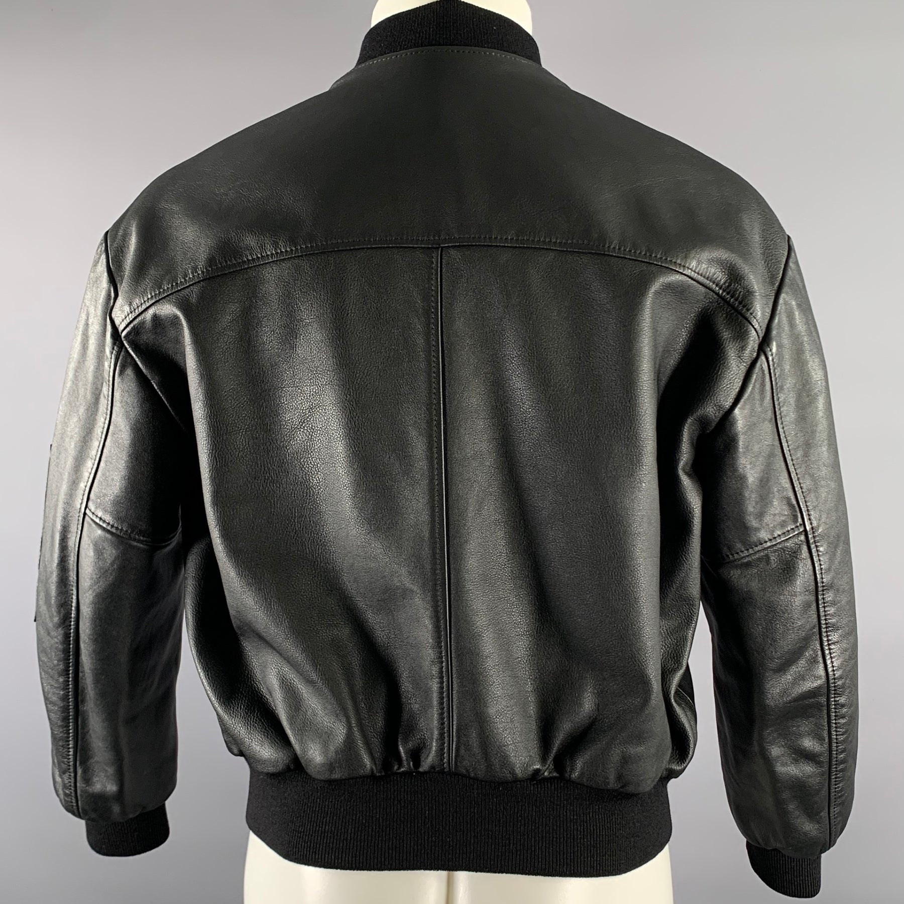 CELINE Size M Black Leather Bomber Jacket