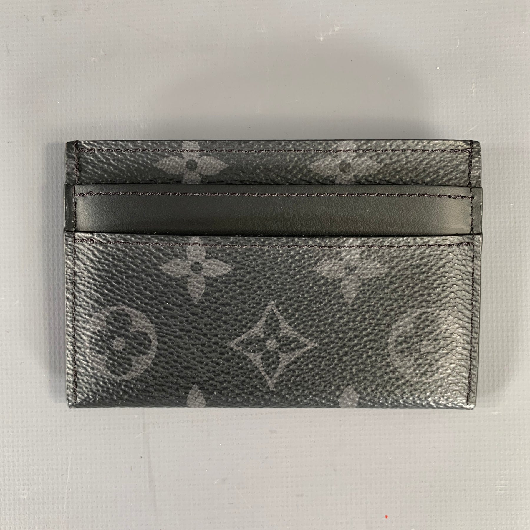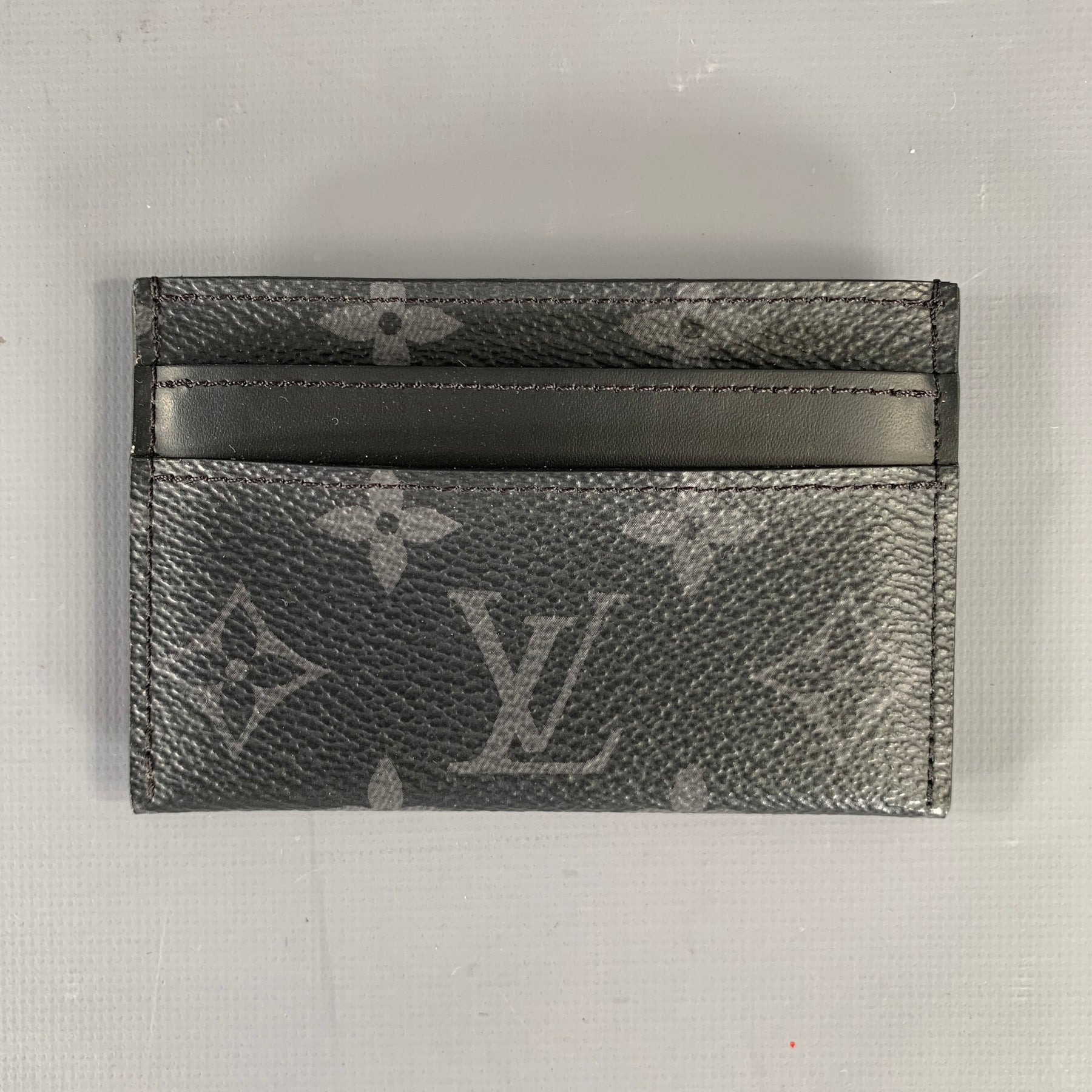 LOUIS VUITTON Card Holder in a black and grey leather with a Monogram Eclipse LV Double. With Box.