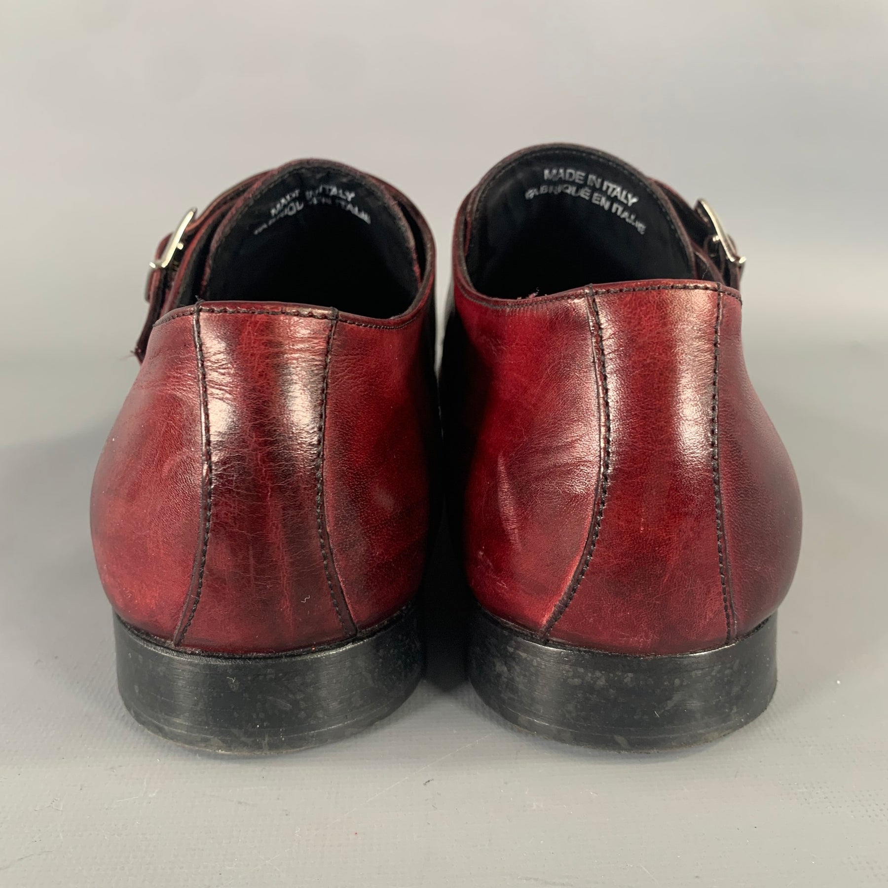 MASSIMO MATTEO dress shoes in a burgundy leather featuring monk strap style and silver tone buckle closure.