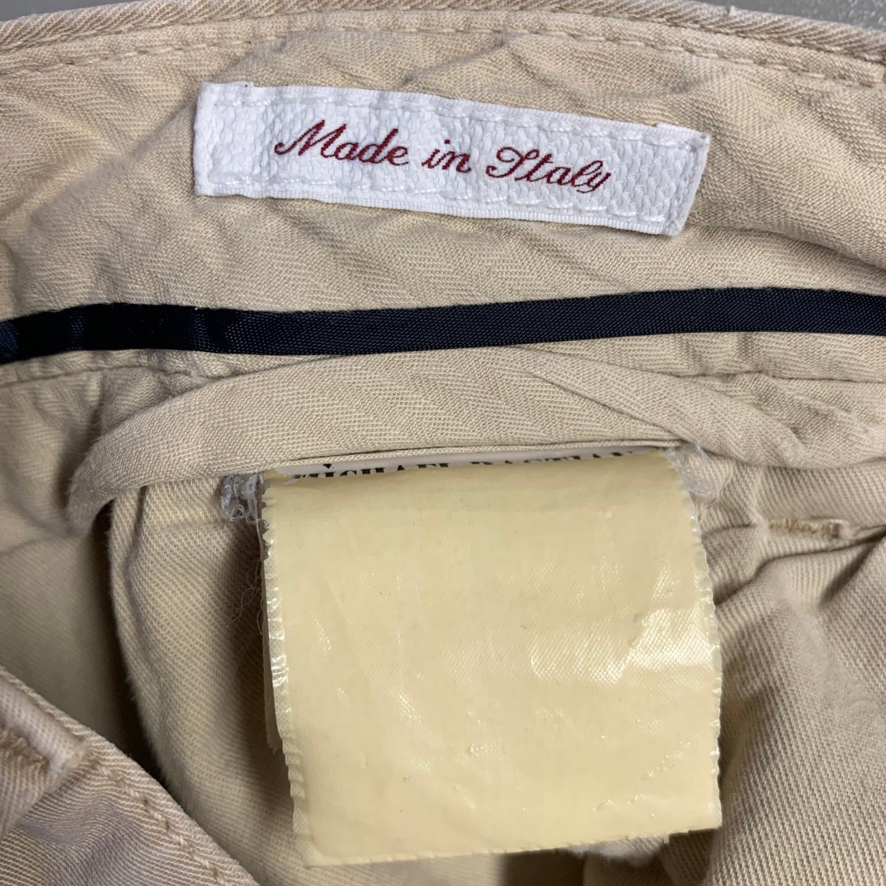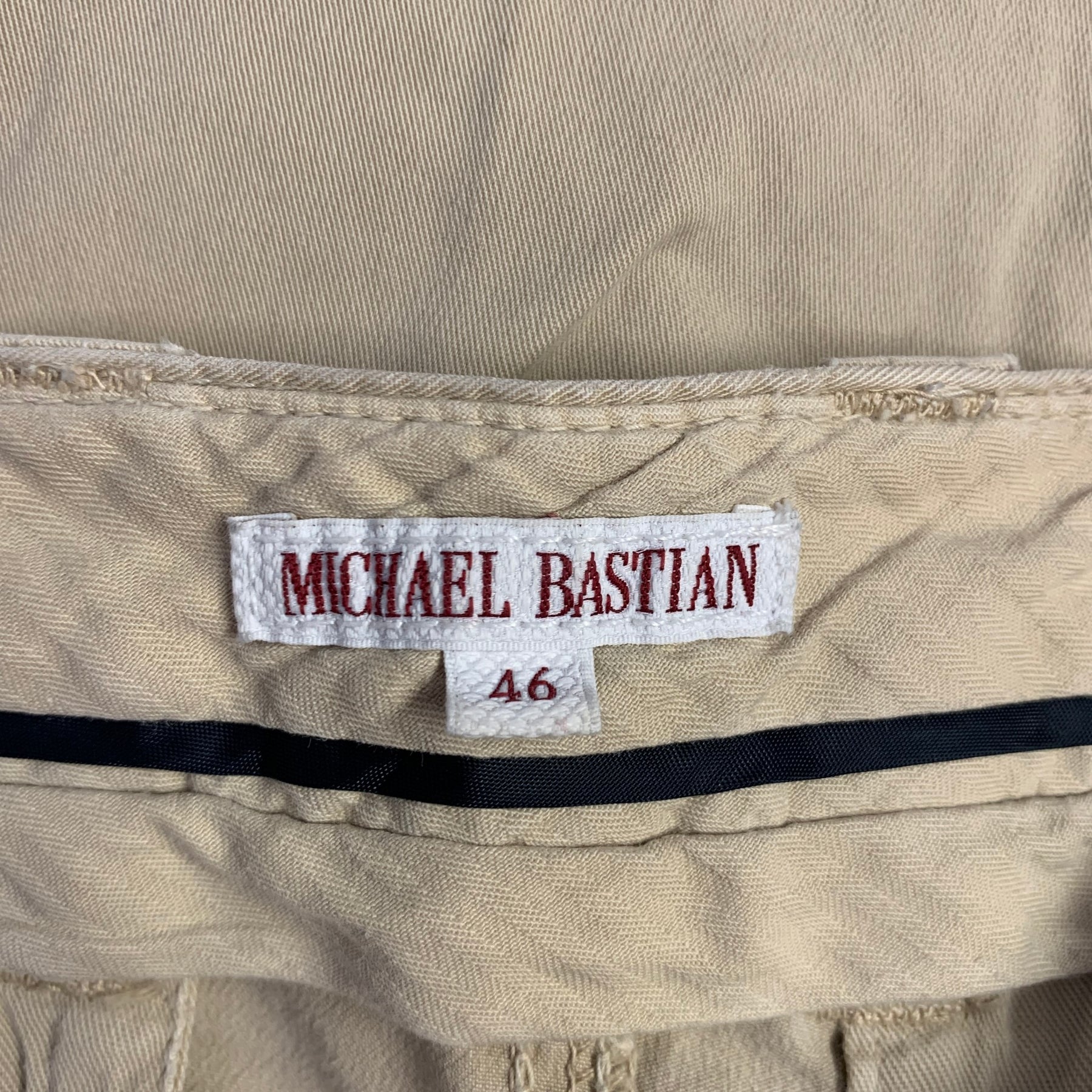 MICHAEL BASTIAN these Italian-made khaki casual pants, meticulously crafted from solid cotton for a timeless appeal. These trousers include unique double pockets and distinctive inner leg panels with stitching details, offering a sophisticated blend of function and heritage.