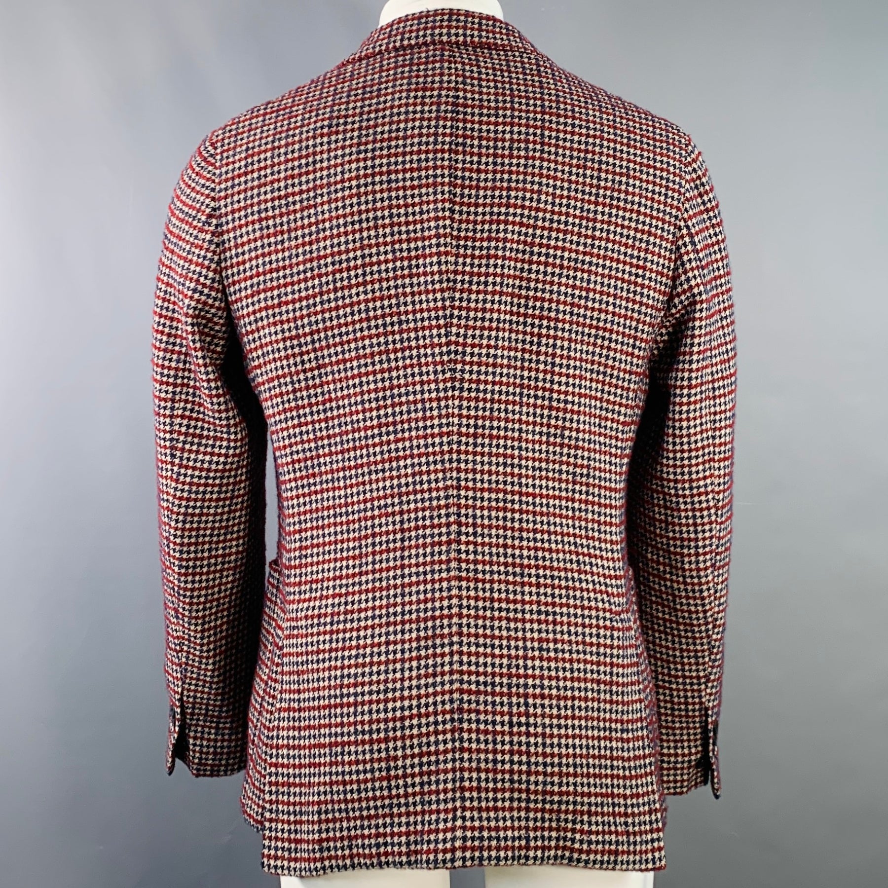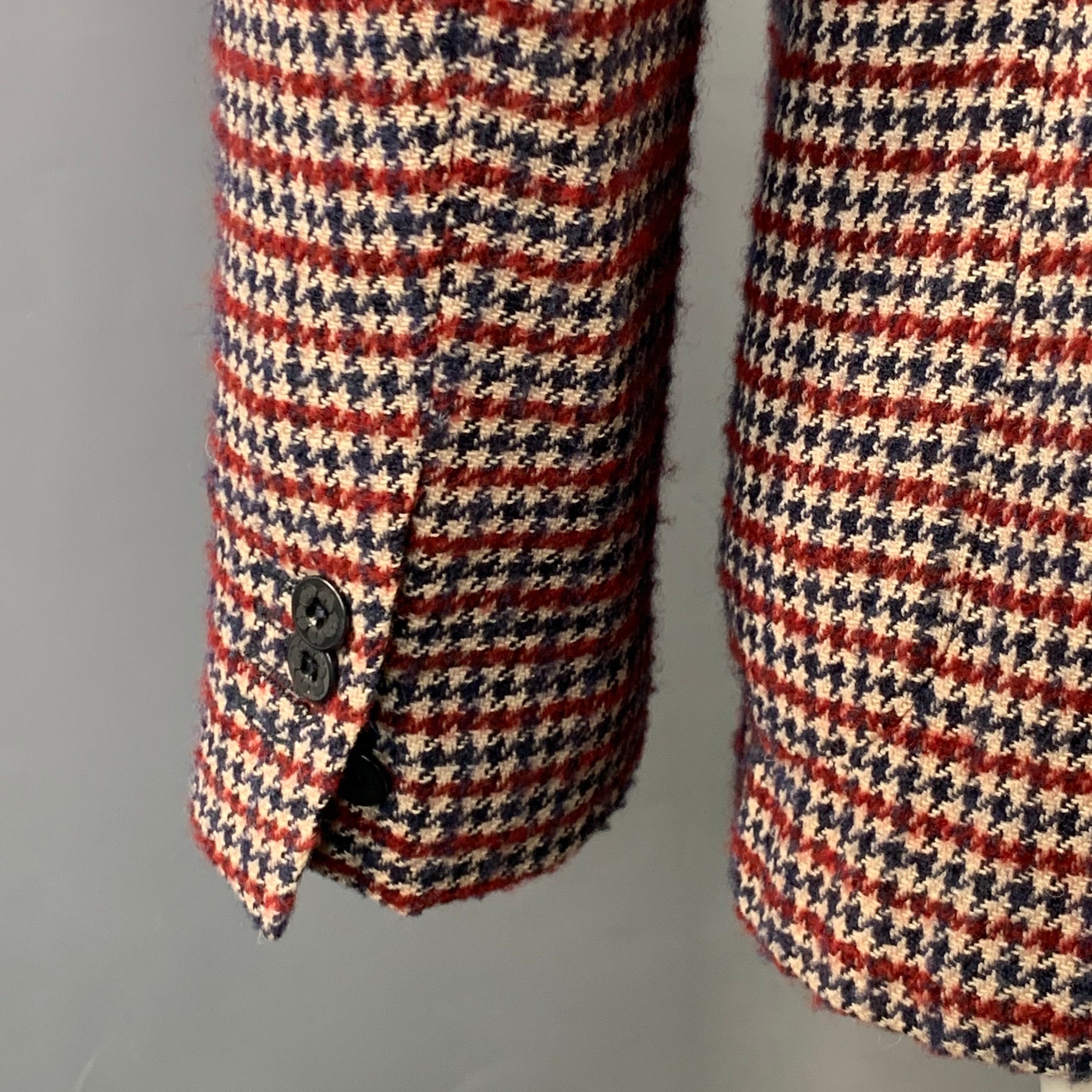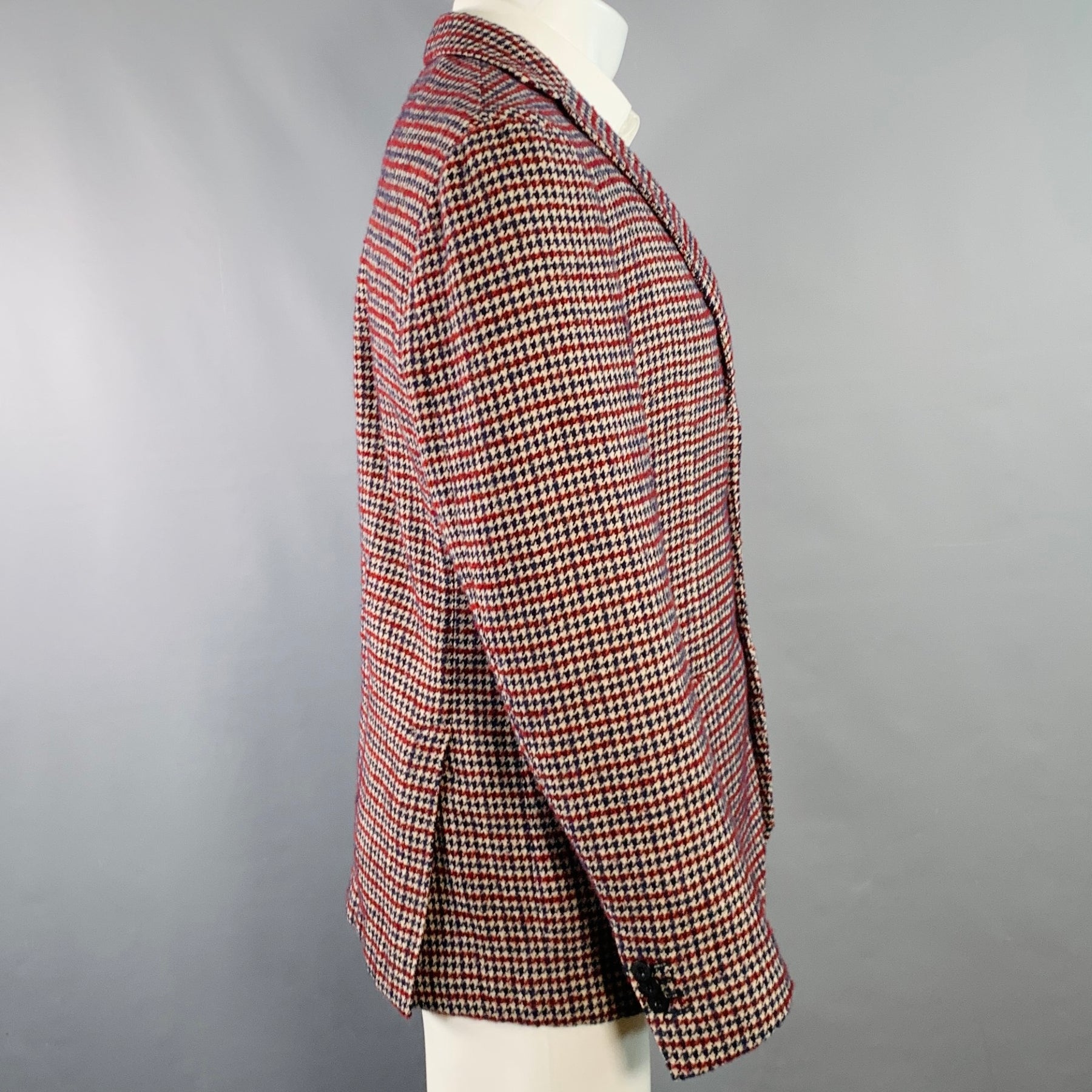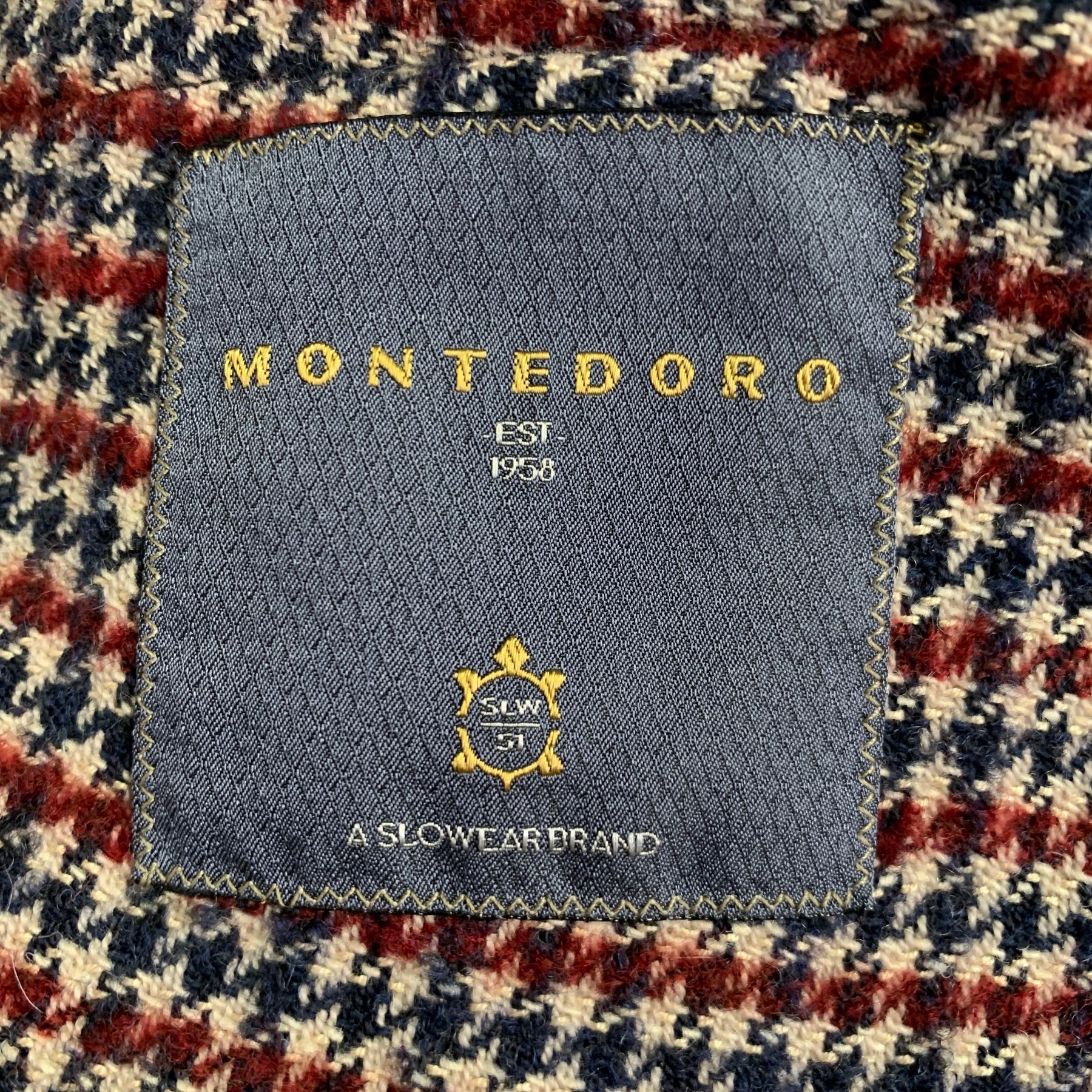 MONTEDORO Size 40 Beige Navy Burgundy Houndstooth Sport Coat