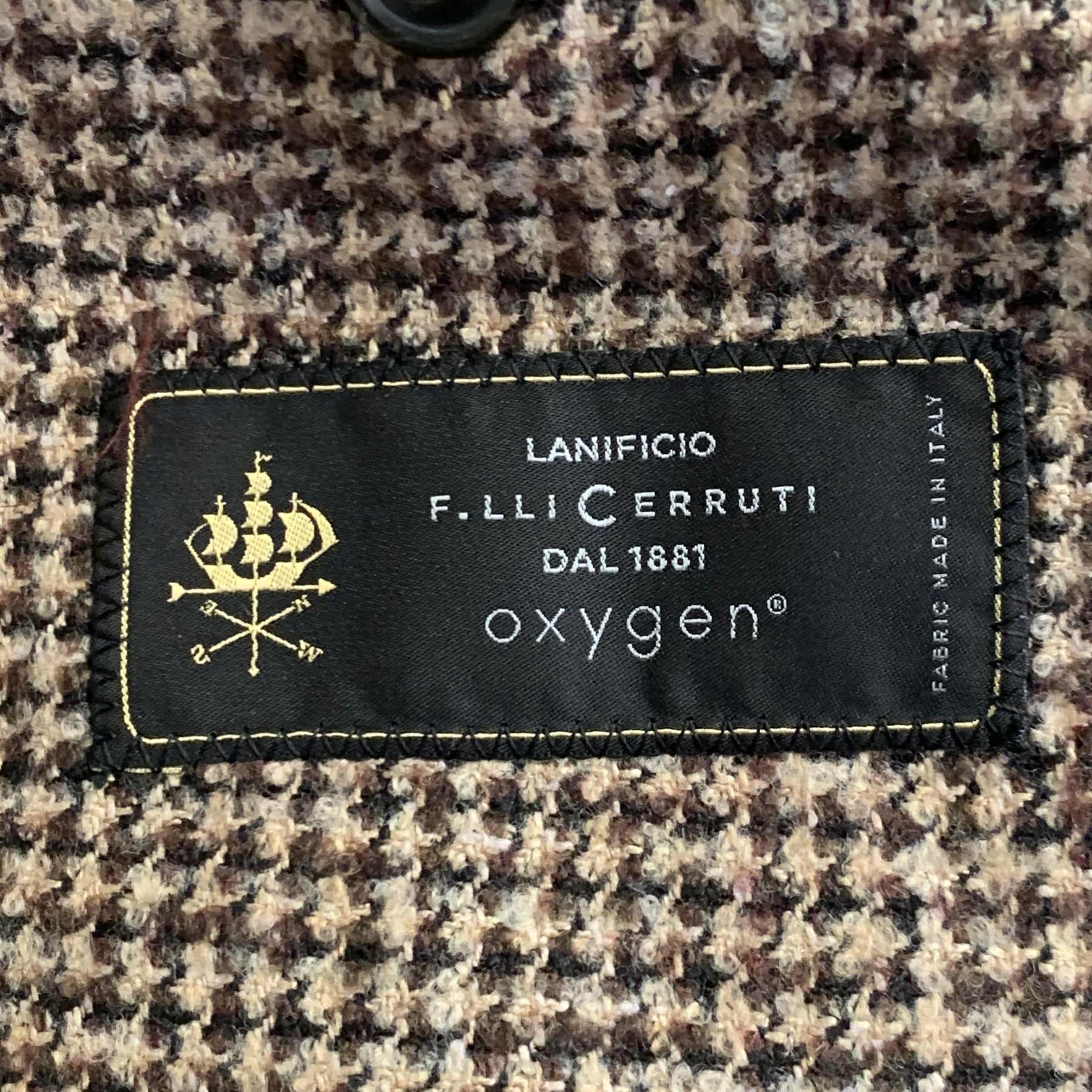 SAKS FIFTH AVENUE Size 40 Khaki Brown Houndstooth Wool Blend Sport Coat