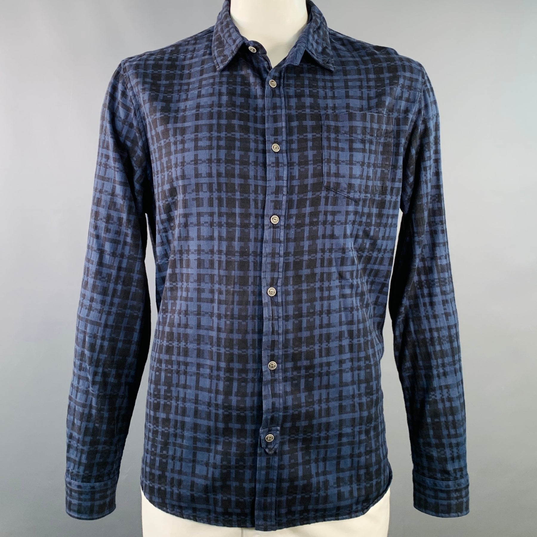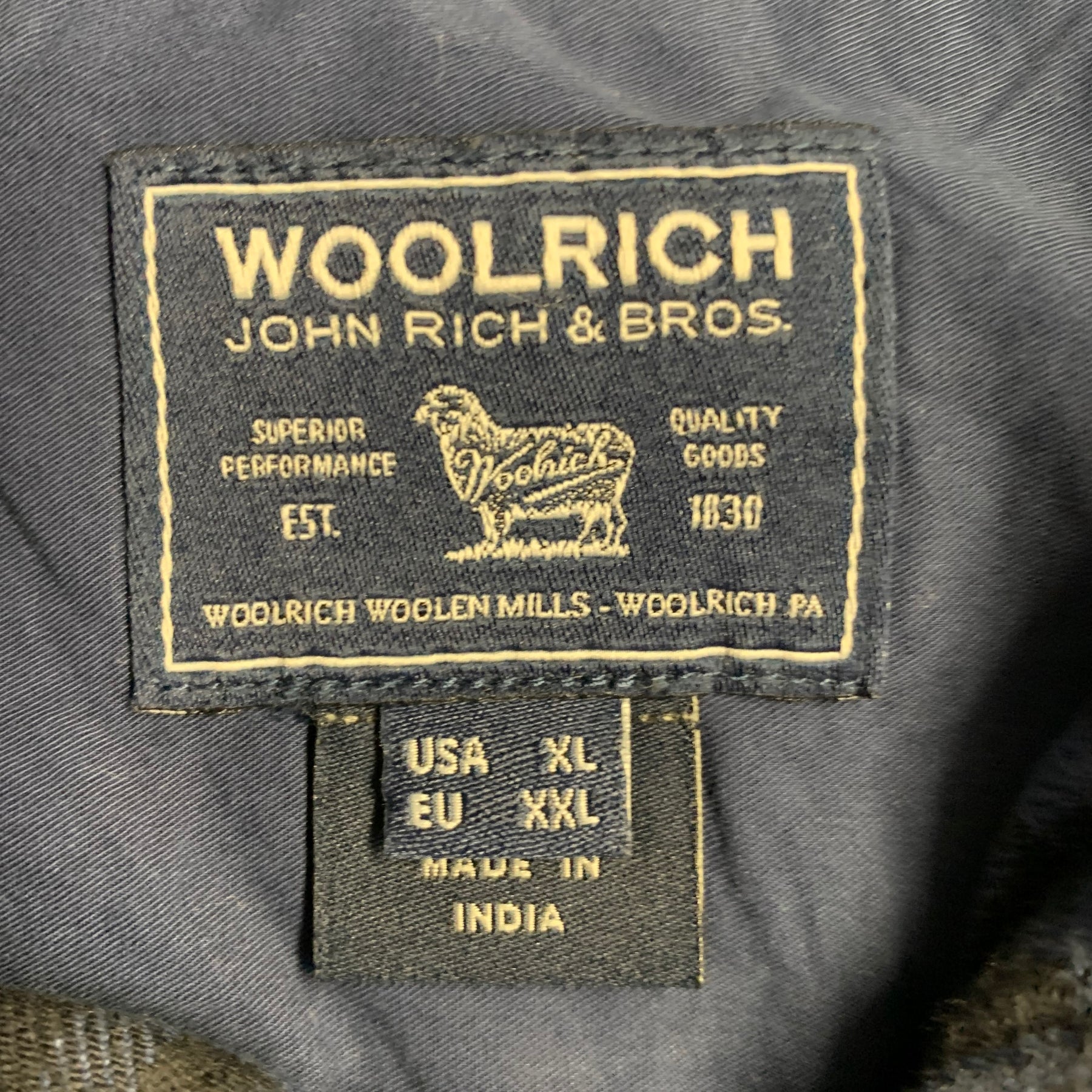 WOOLRICH Size XL Navy Black Plaid Cotton One Pocket Long Sleeve Shirt