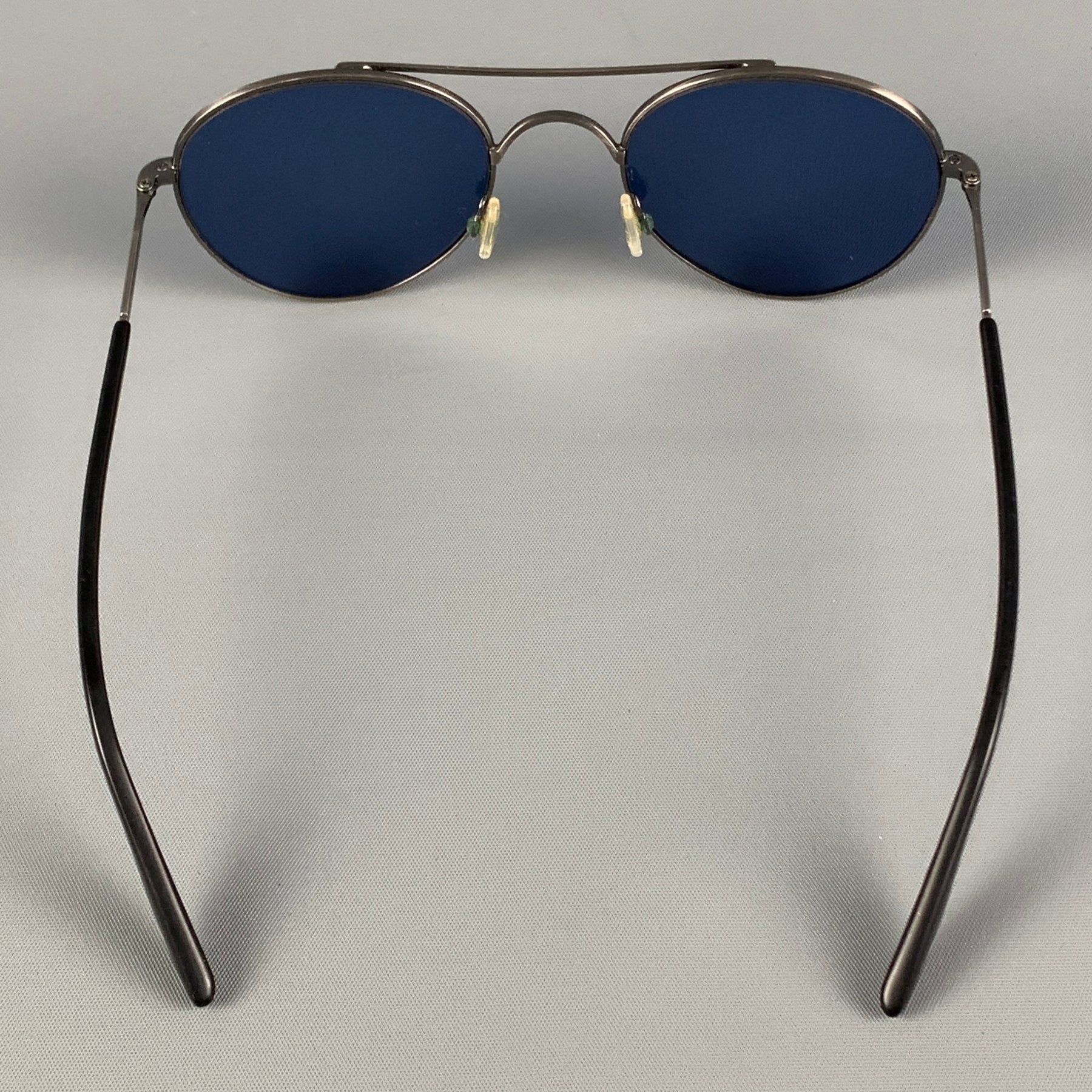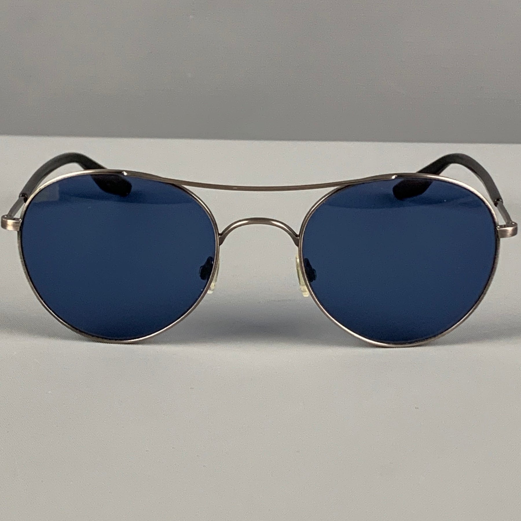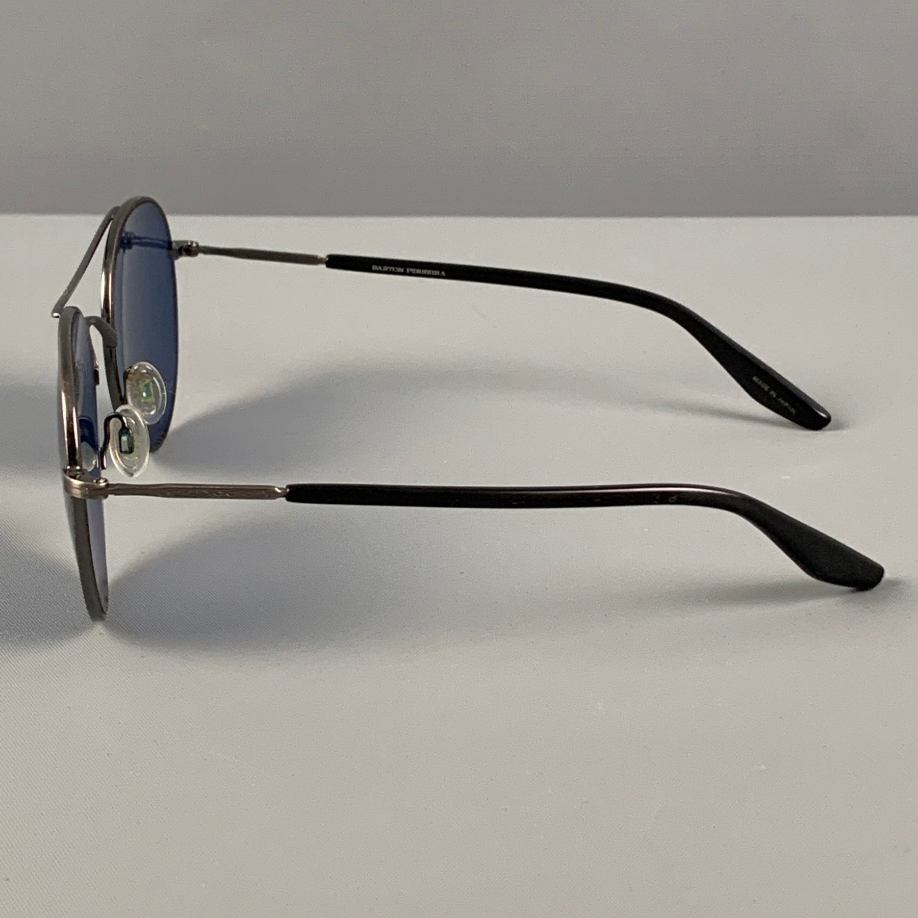 Las gafas de sol BARTON PERREIRA vienen en metal en tono plateado con lentes tintadas de azul.